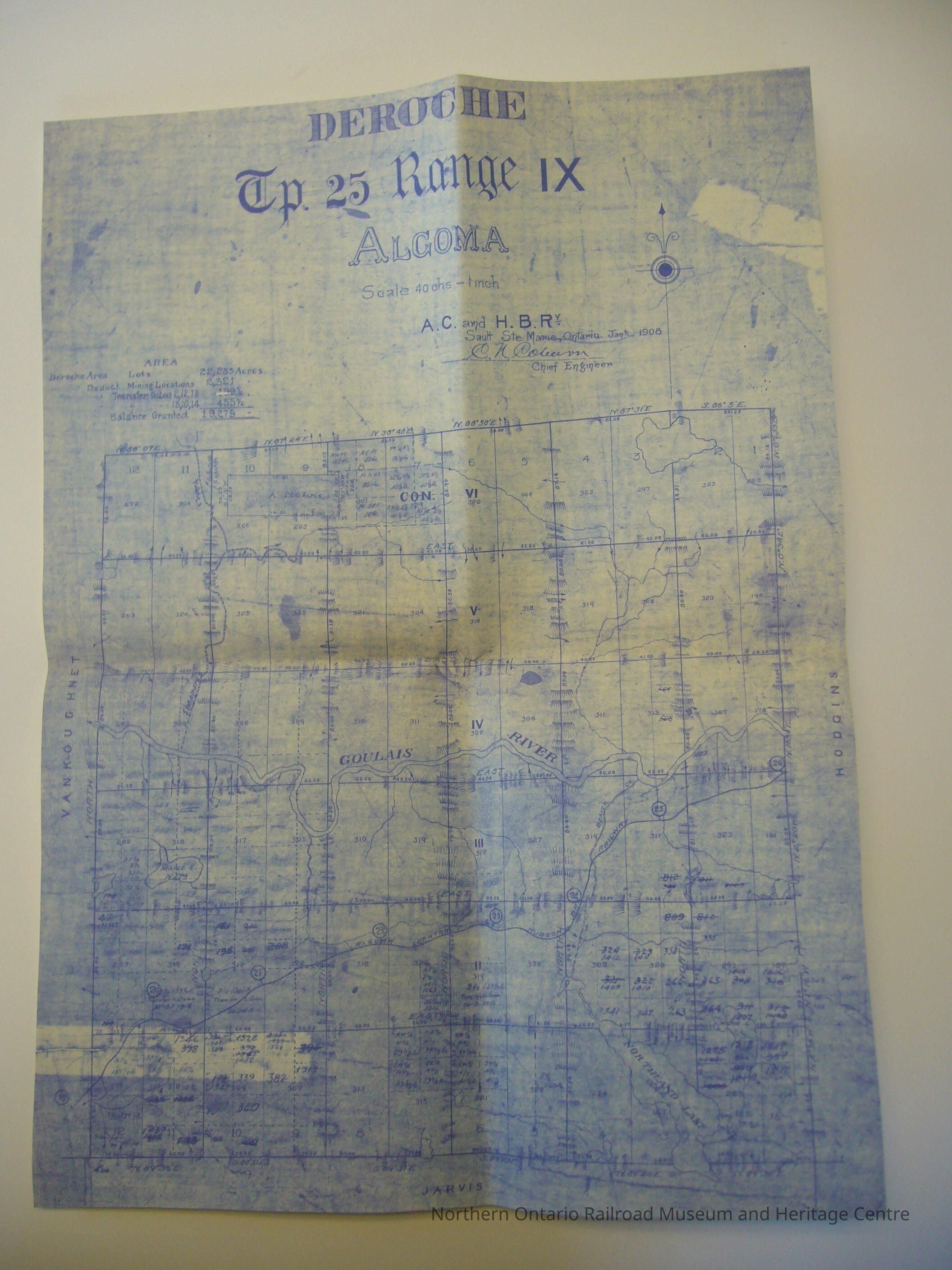 Copy of a map of township 25 range IX, Algoma including Goulais River, Northland Lakeand Sheppard's Creek. Map by Algoma Central and Hudson Bay Railway Company.
