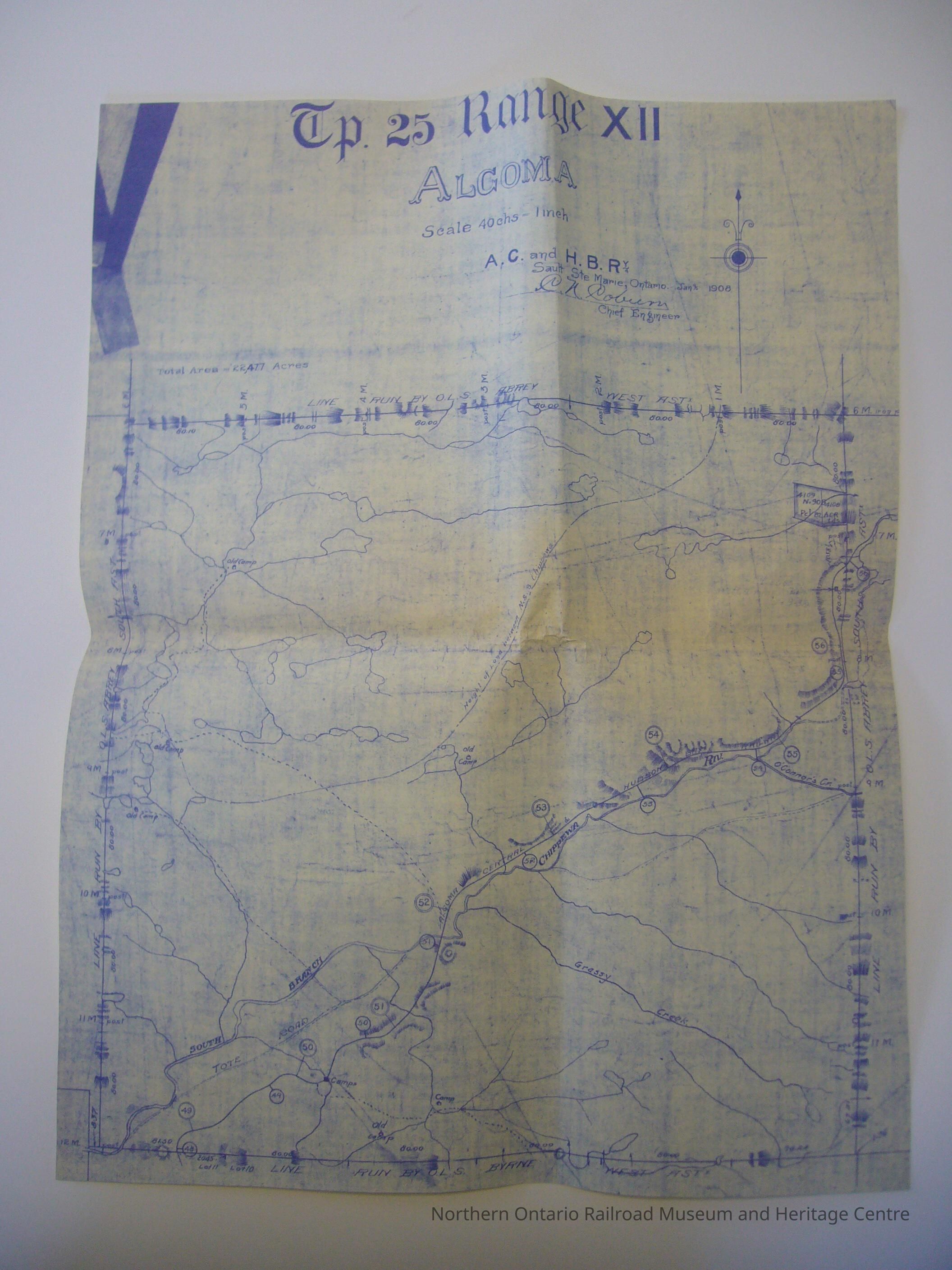 Copy of a map of township 28 range XVI, Algoma, including Grassy Creek, Chippewa River. Map by Algoma Central and Hudson Bay Railway Company.