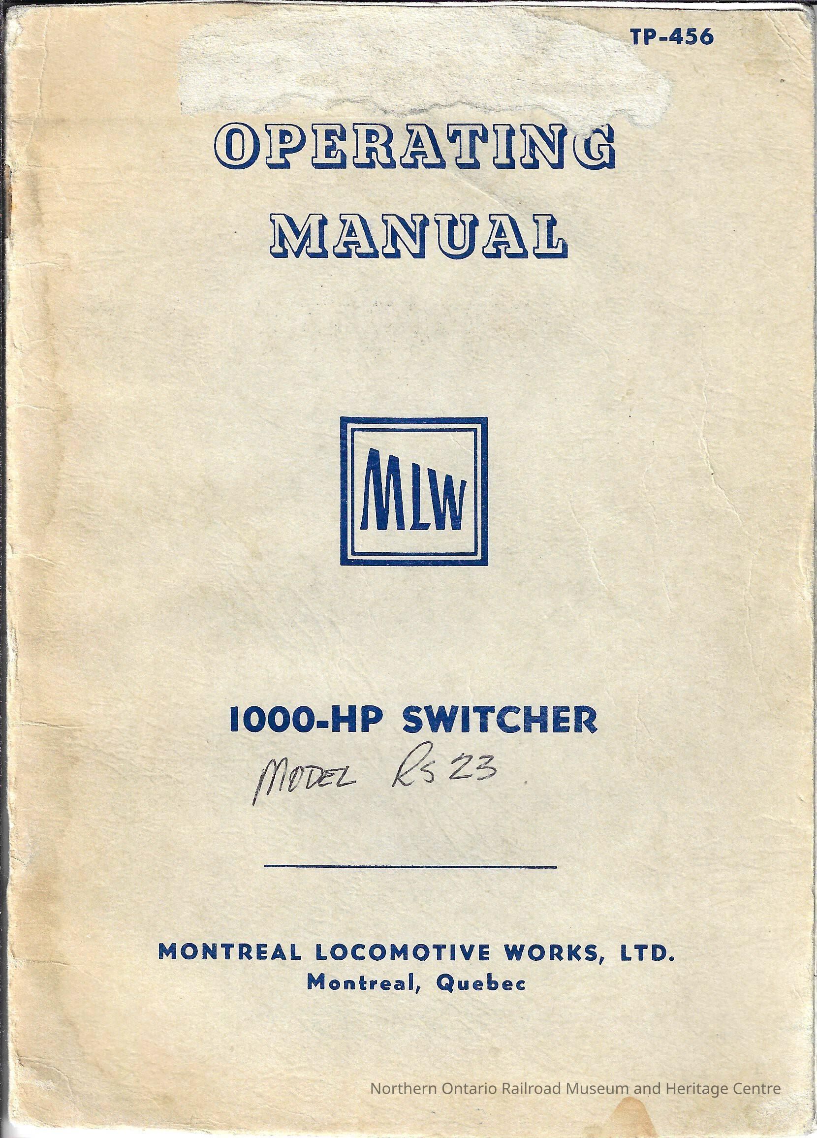 Montreal Locomotive Works, LTD. 1000-HP Switcher Operating ManualEntry/Object ID