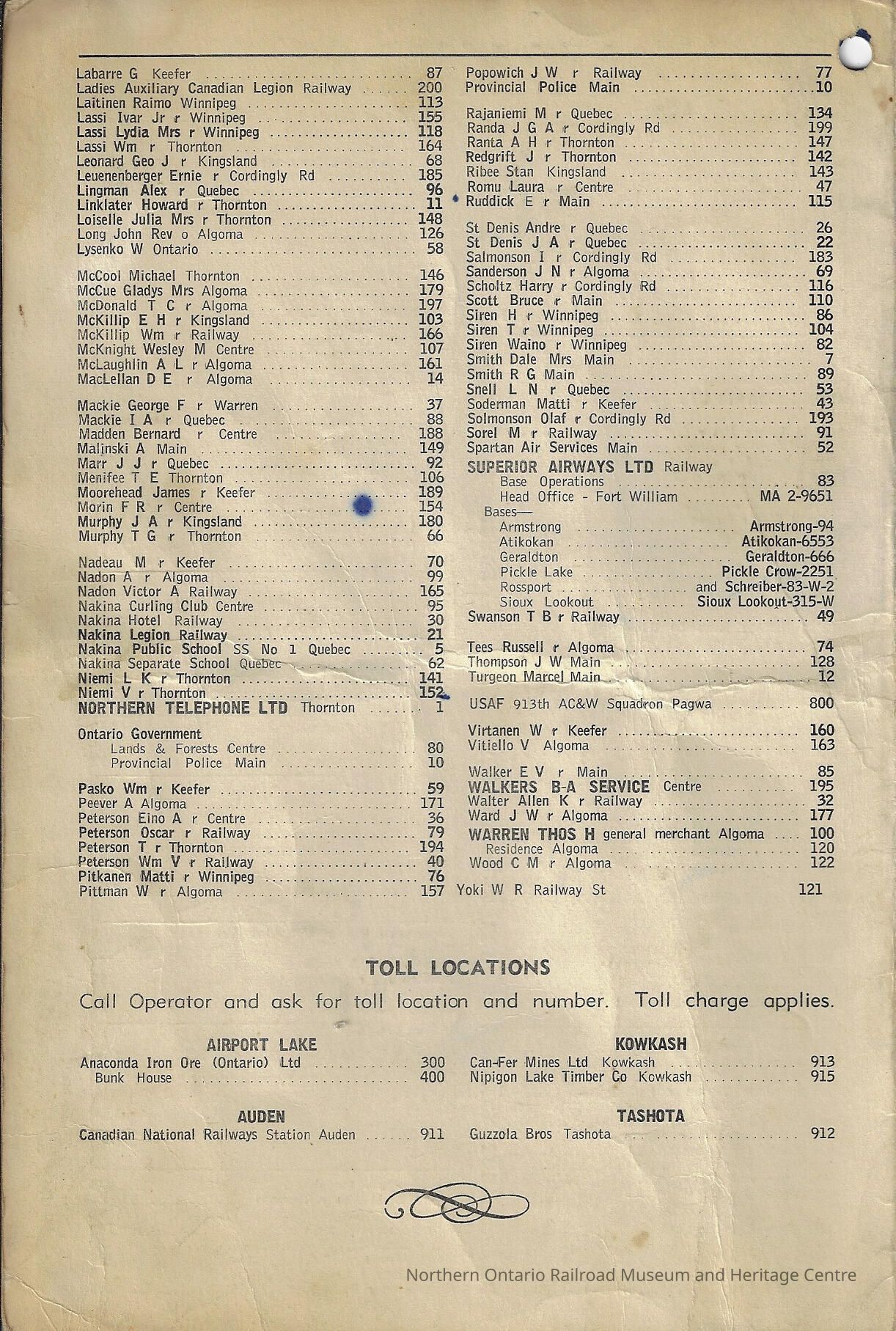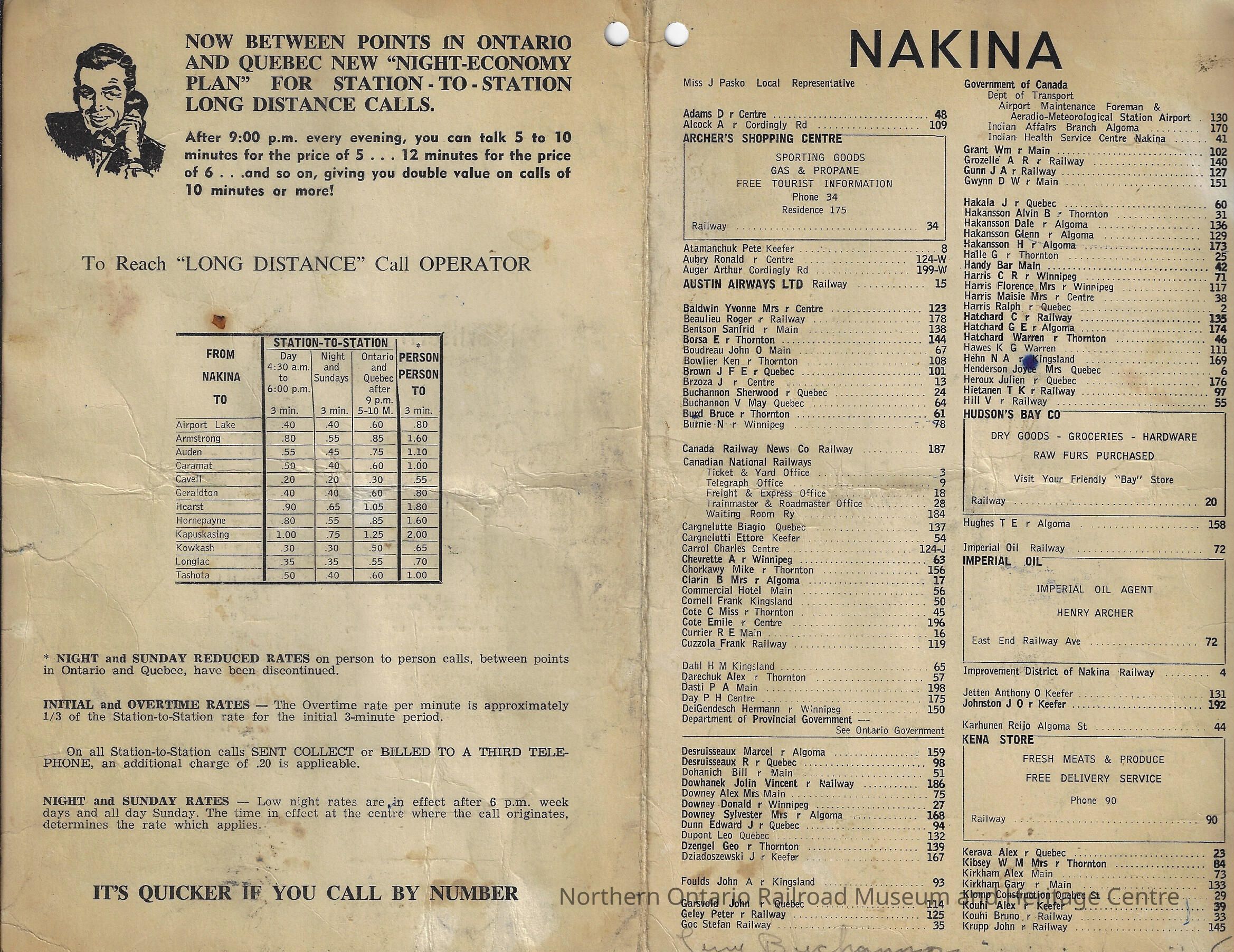 Telephone directory for the Town of Nakina, OntarioContext