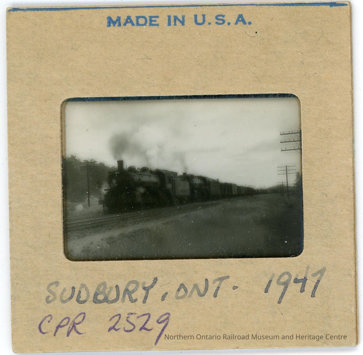 Negative slide of CPR 2529 in Sudbury ON, 1947Description
