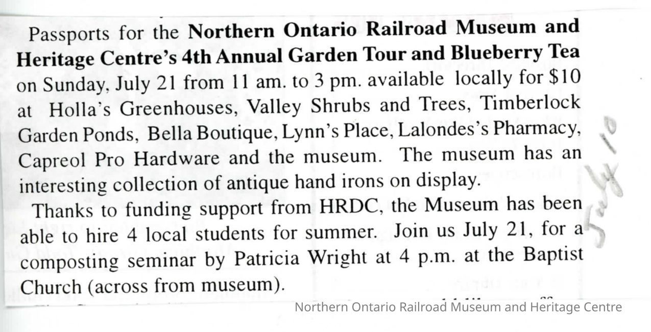 "News from Capreol" in Valley Vision, 10 July 2002. Outlines passports for Garden Tour.Collection