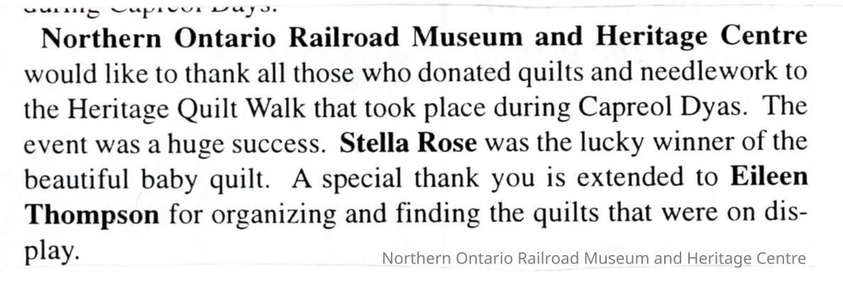 "News from Capreol" in Valley Vision, "Donated Quilts"Description