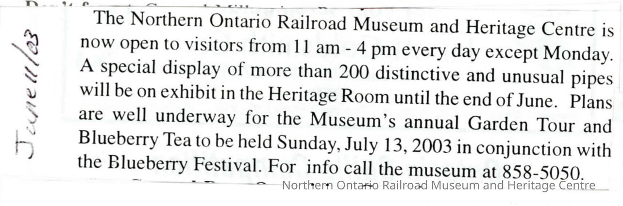 "News from Capreol" in Valley Vision, June 11, 2003. Reminder that NORMHC is now open for the season.Collection