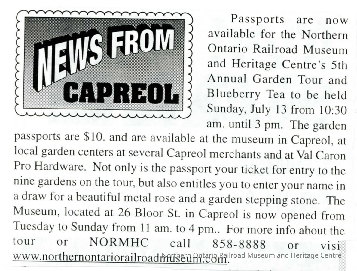 "News from Capreol" in Valley Vision. Offering Passports for the 5th Annual Blueberry tea and Garden Tour.Collection
