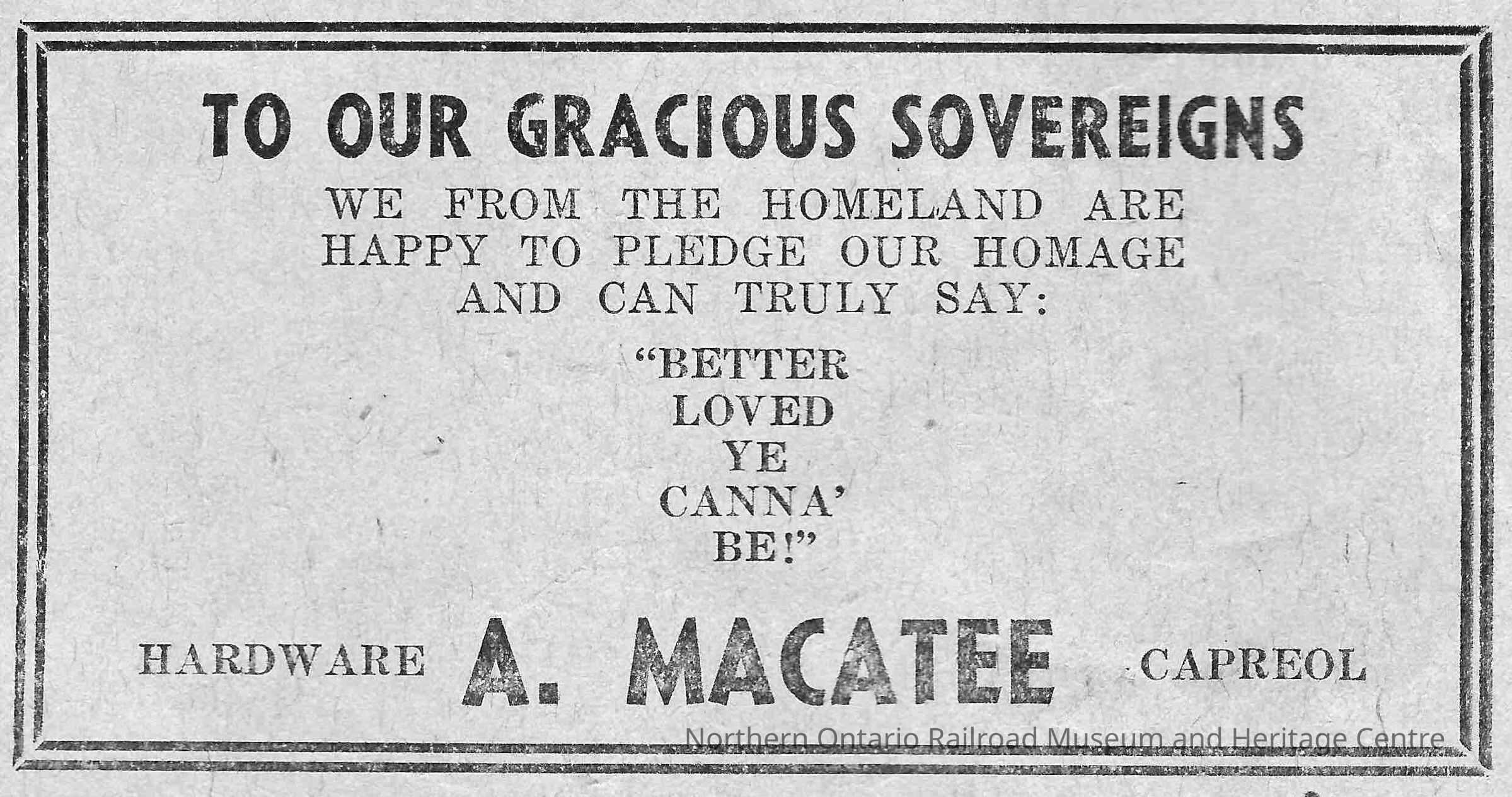 Newspaper Advertisement, A. MacAtee Hardware.Collection