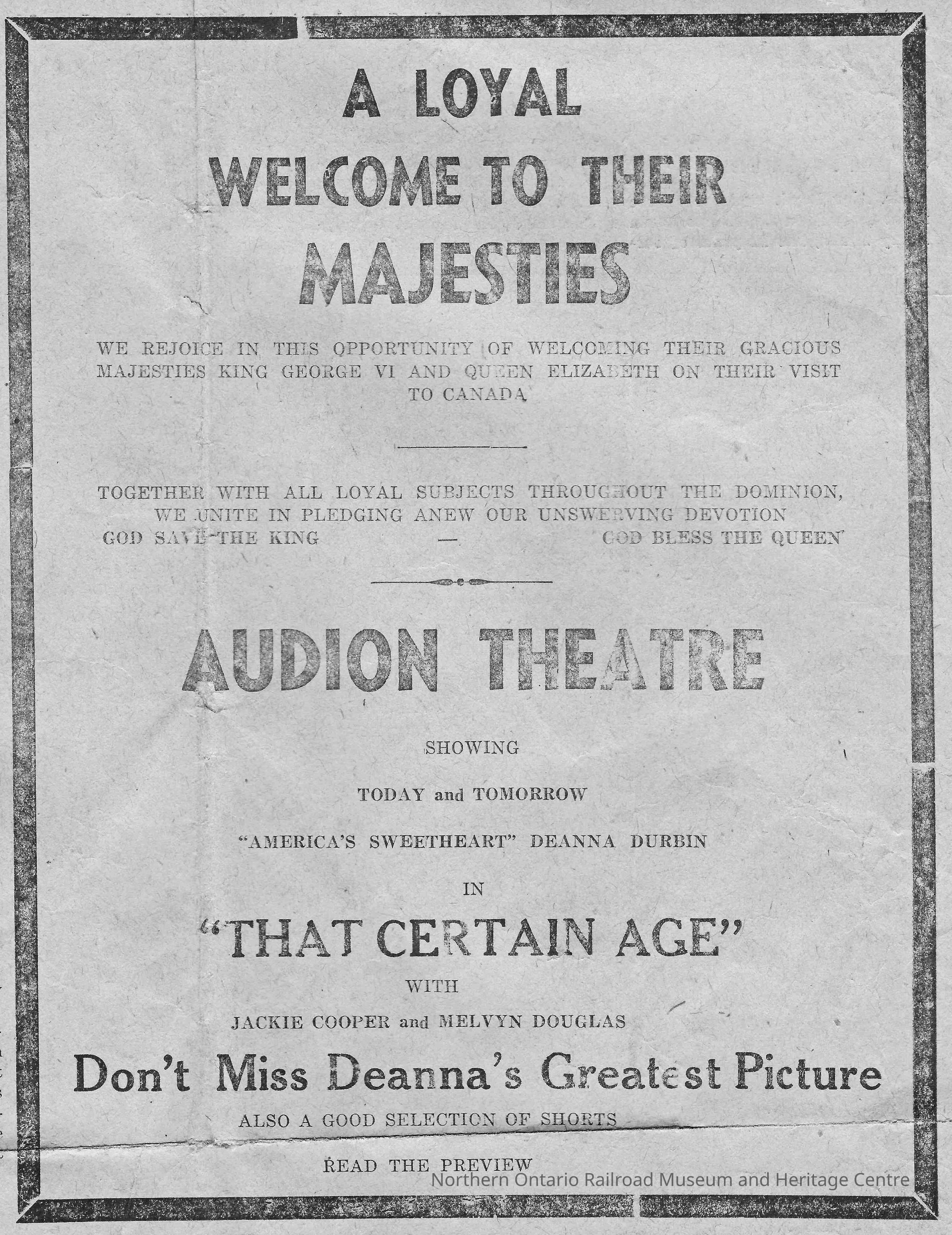 Newspaper Advertisement, Audion Theatre, Capreol, 1939.Collection