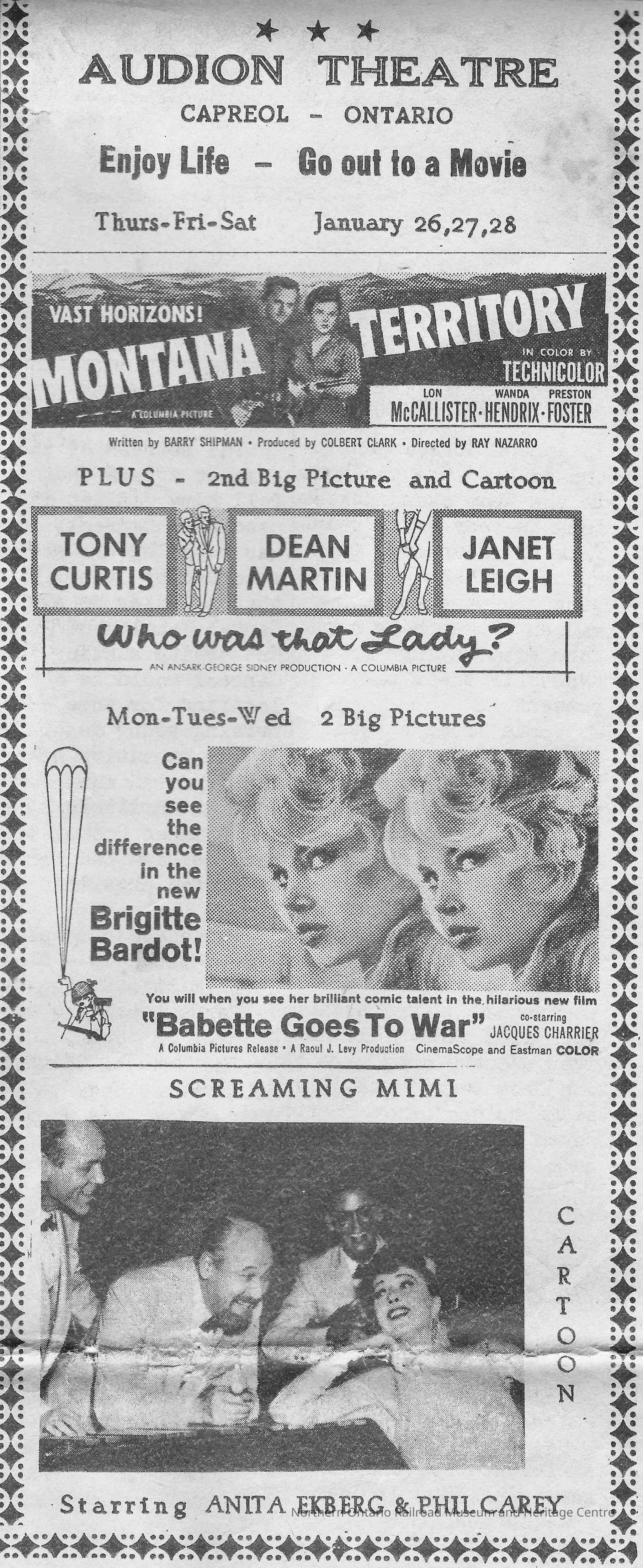 Newspaper Advertisement, Audion Theatre, Capreol, 1960.Collection