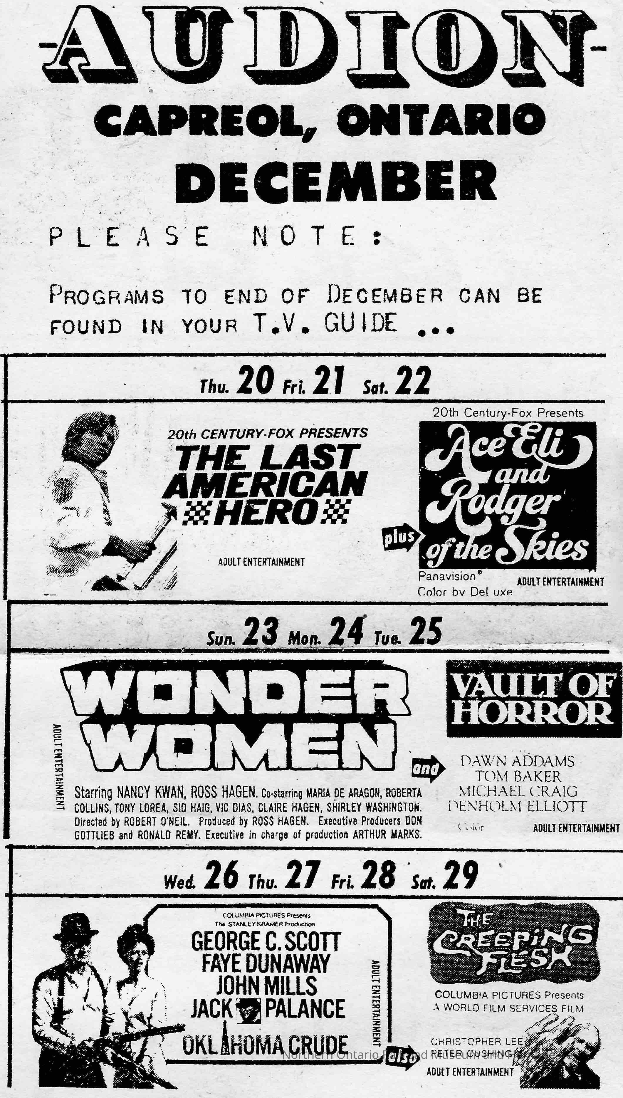 Newspaper Advertisement, Audion Theatre, Capreol, 1973.Collection