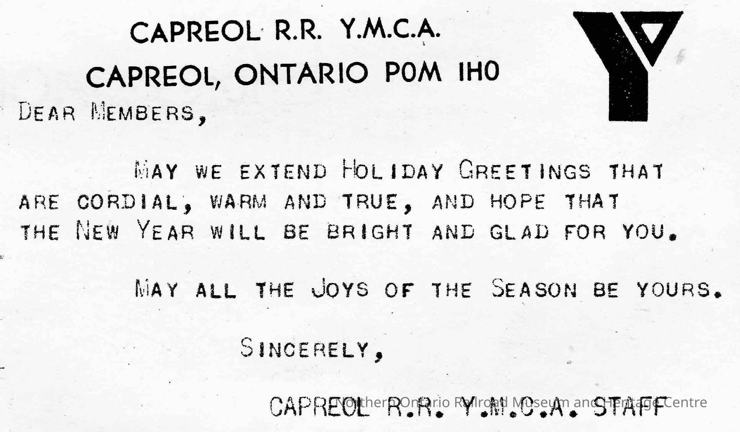Newspaper Advertisement, Capreol Railroad YMCA.Collection