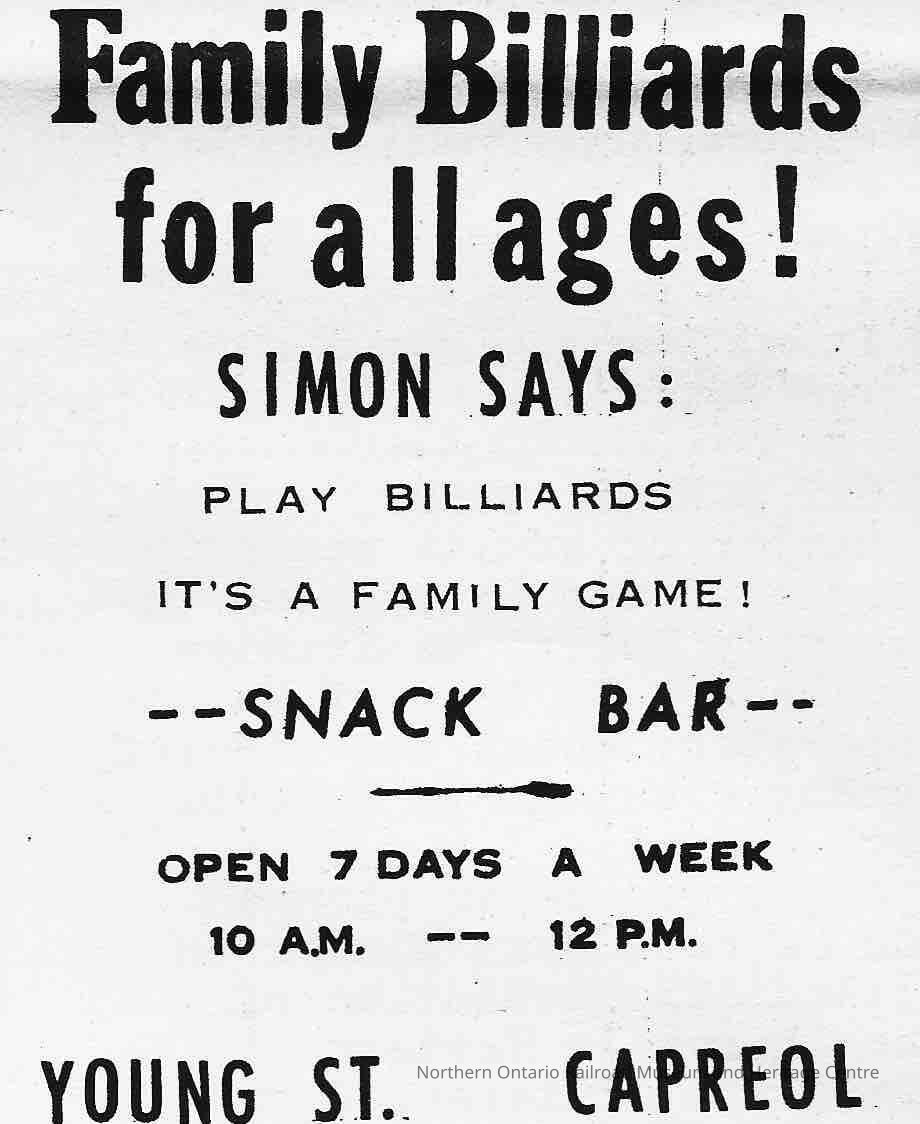 Newspaper Advertisement, Family Billiards.Collection