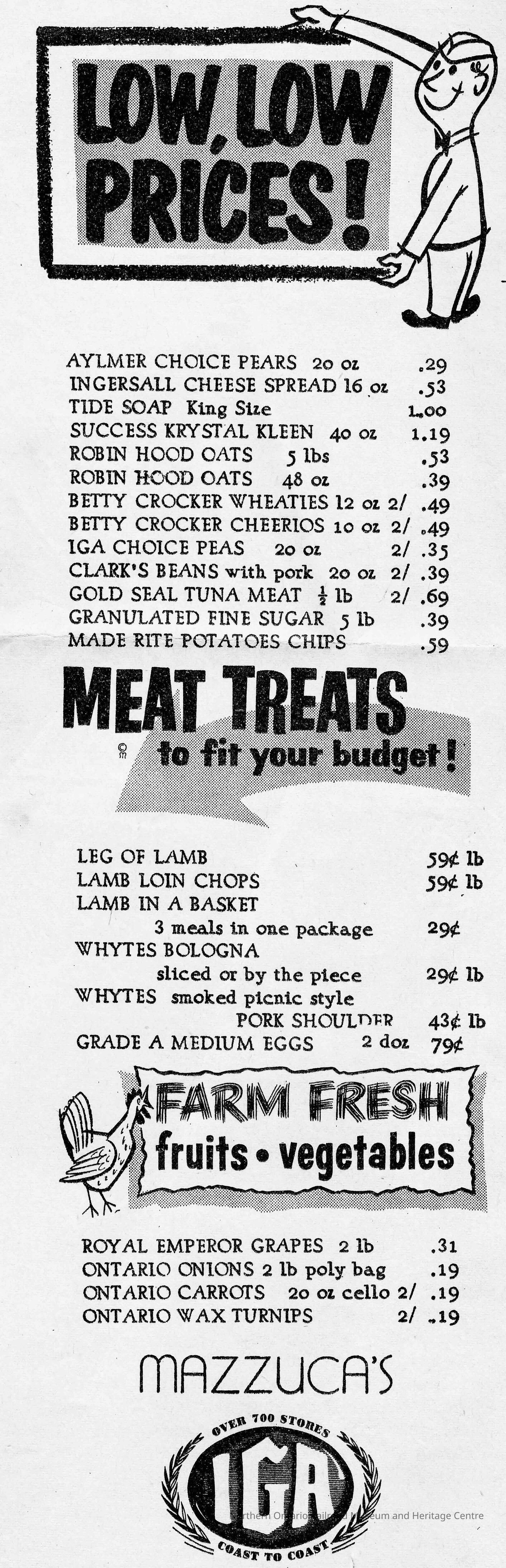 Newspaper Advertisement, Mazzuca's IGA, Capreol.Collection
