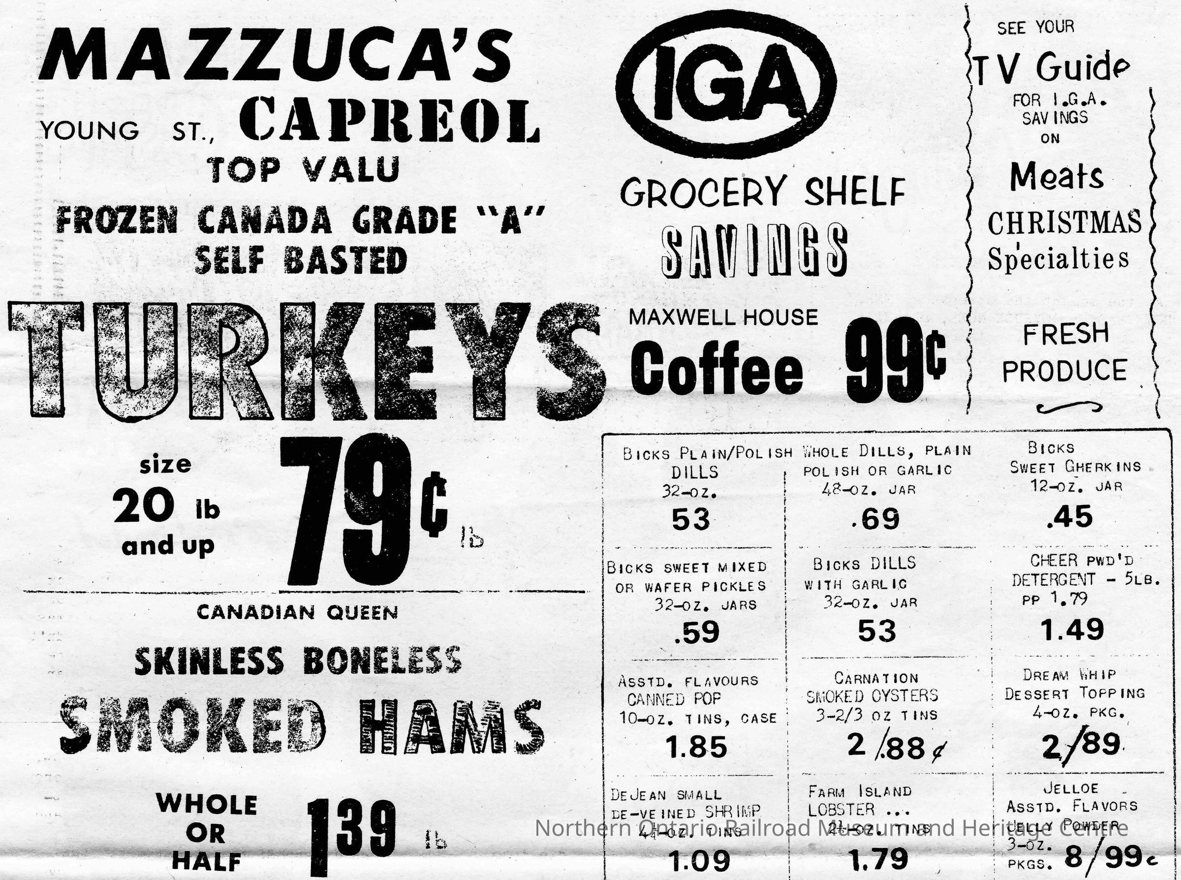 Newspaper Advertisement, Mazzuca's IGA, Capreol.Collection