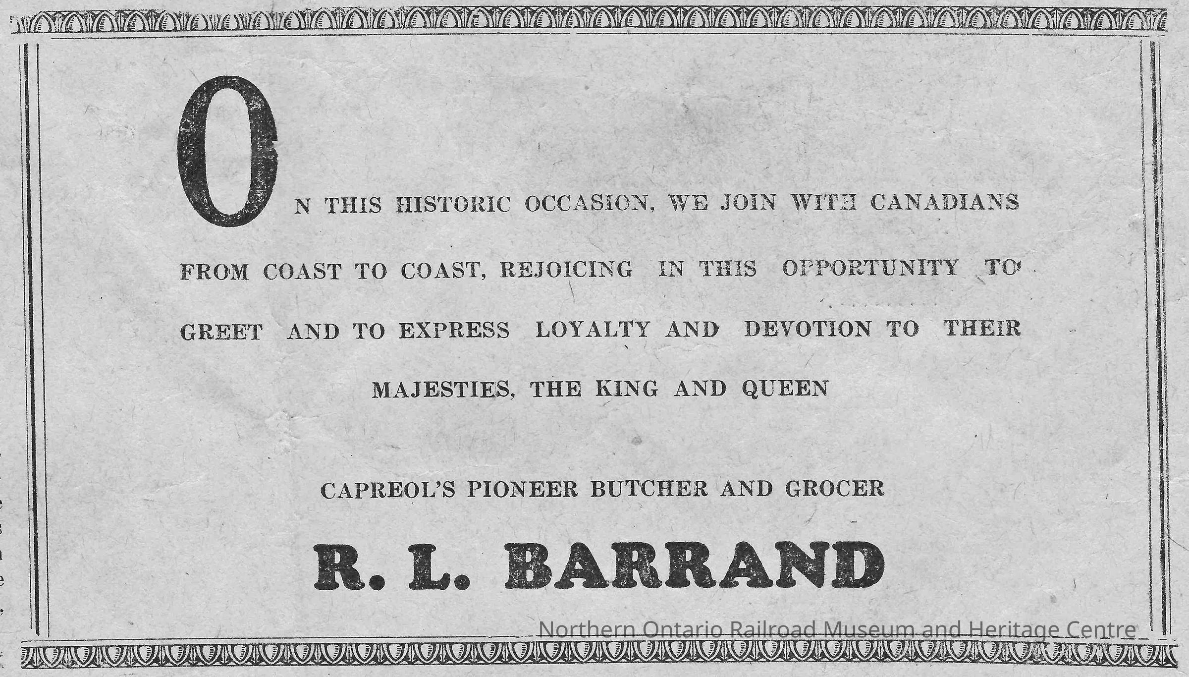 Newspaper Advertisement, R.L. Barrand Butcher and Grocer, 1939.Collection