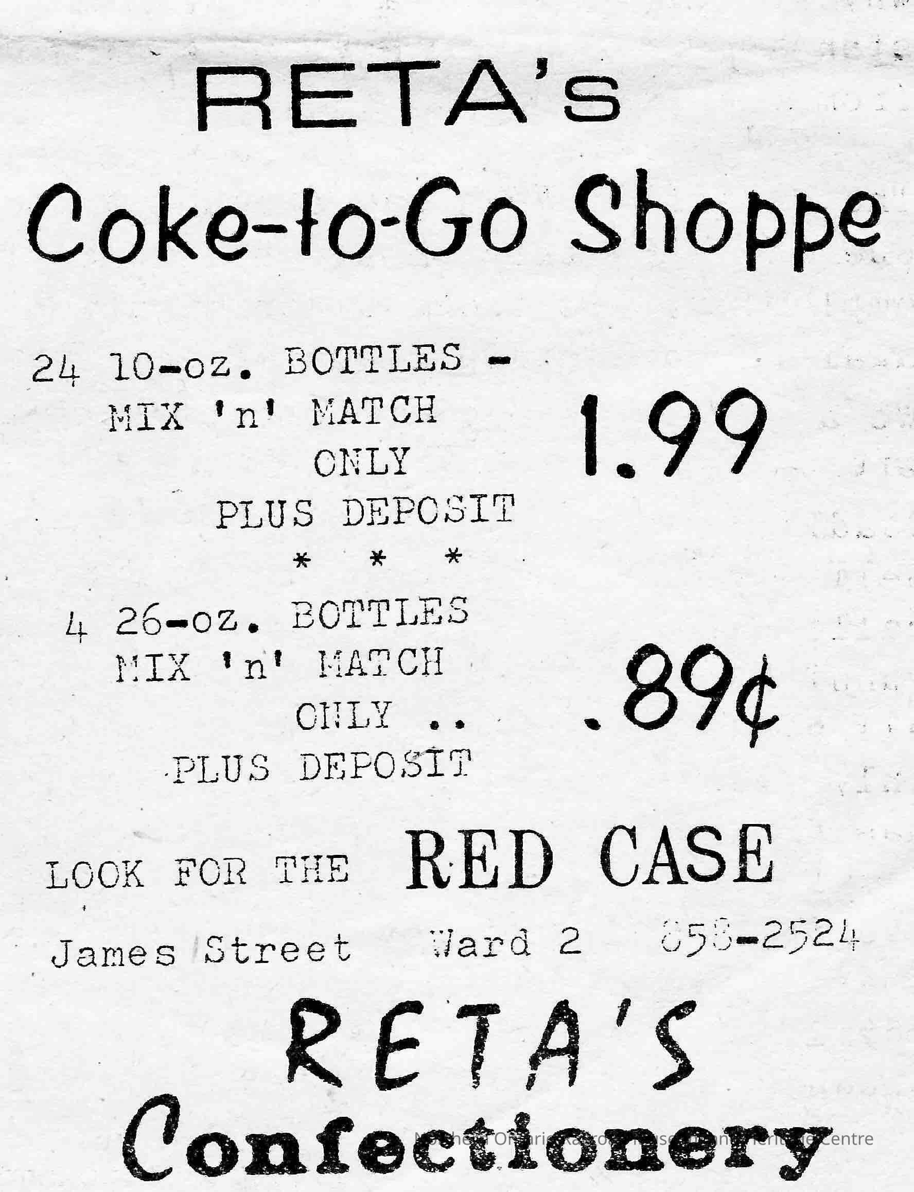 Newspaper Advertisement, Reta's Confectionery.Collection