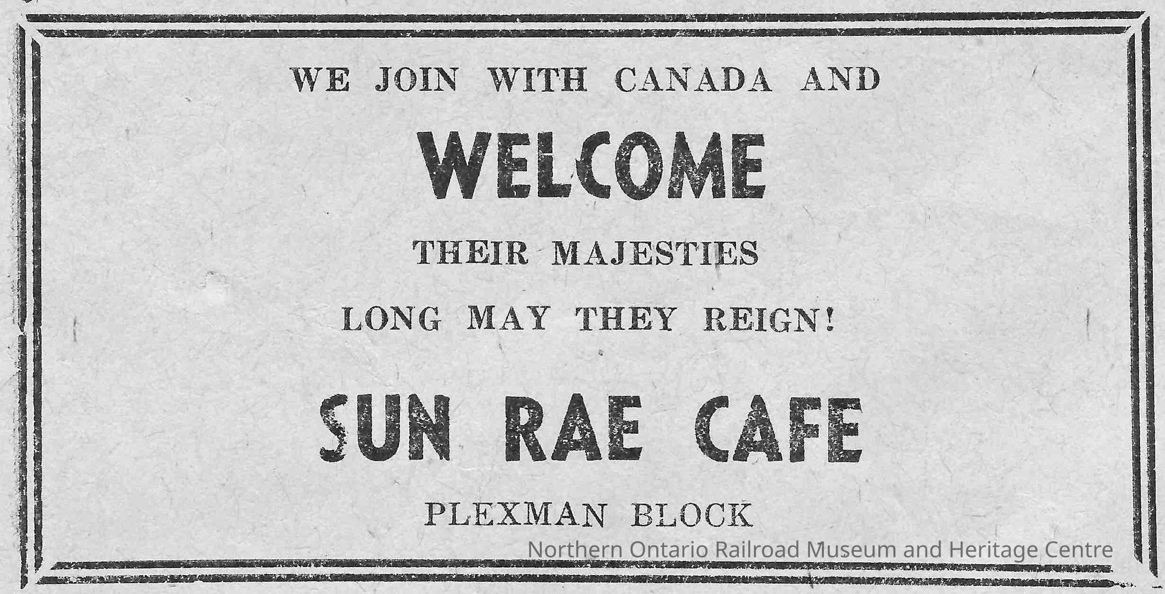 Newspaper Advertisement, Sun Rae Cafe.Collection