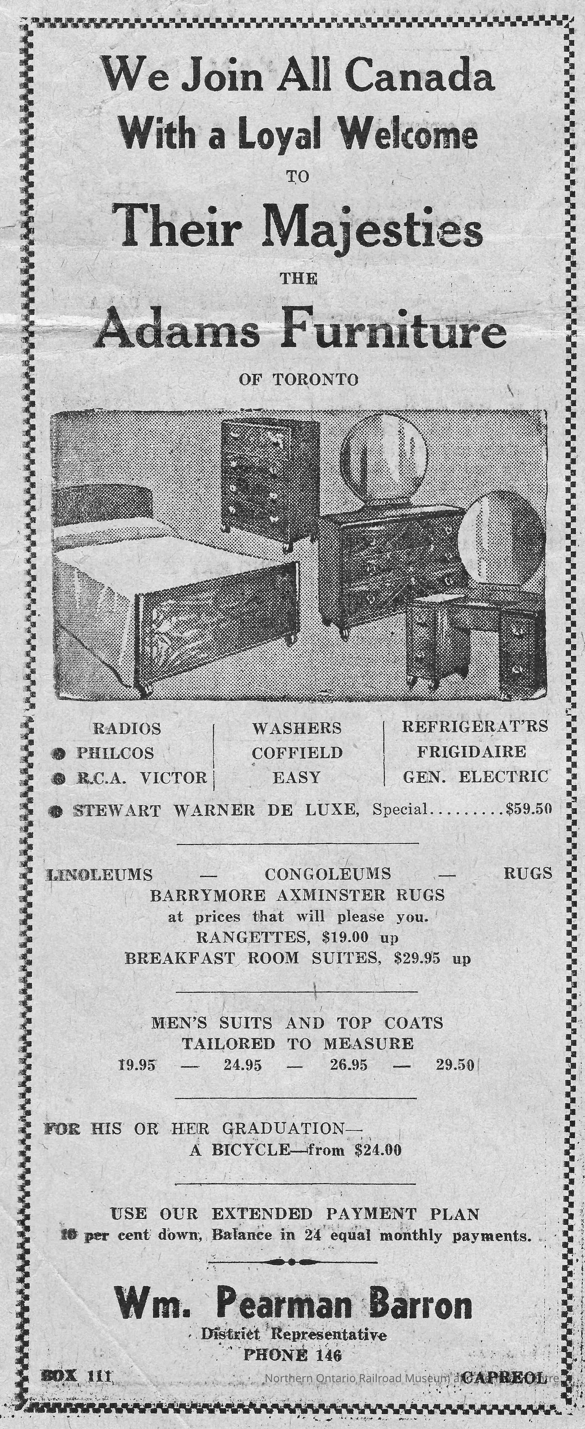 Newspaper Advertisement, Wm. Pearman Barron, Adams Furniture.Collection