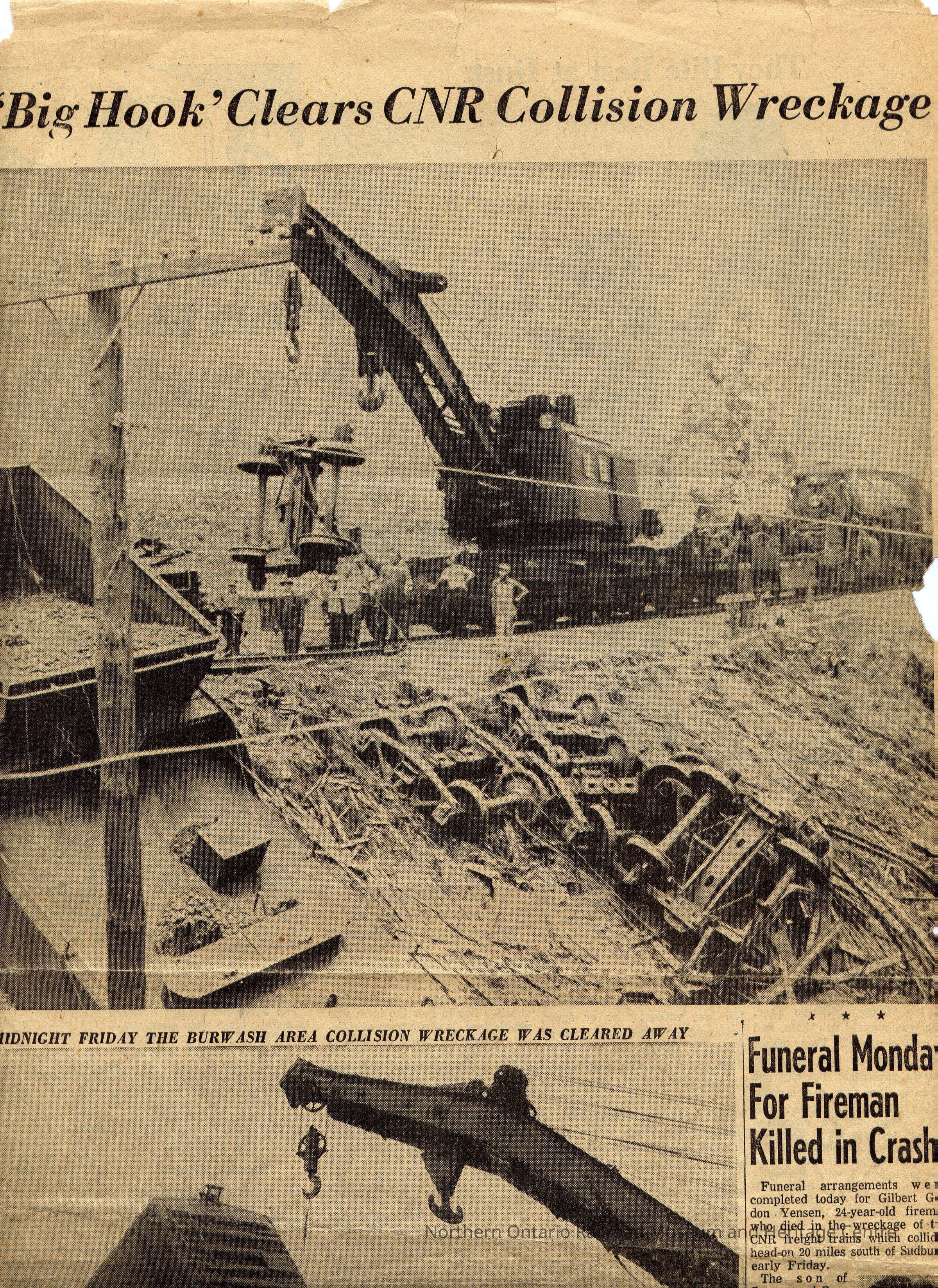 Newspaper Article - Big Hook Clears CNR Collision wreckageEntry/Object ID