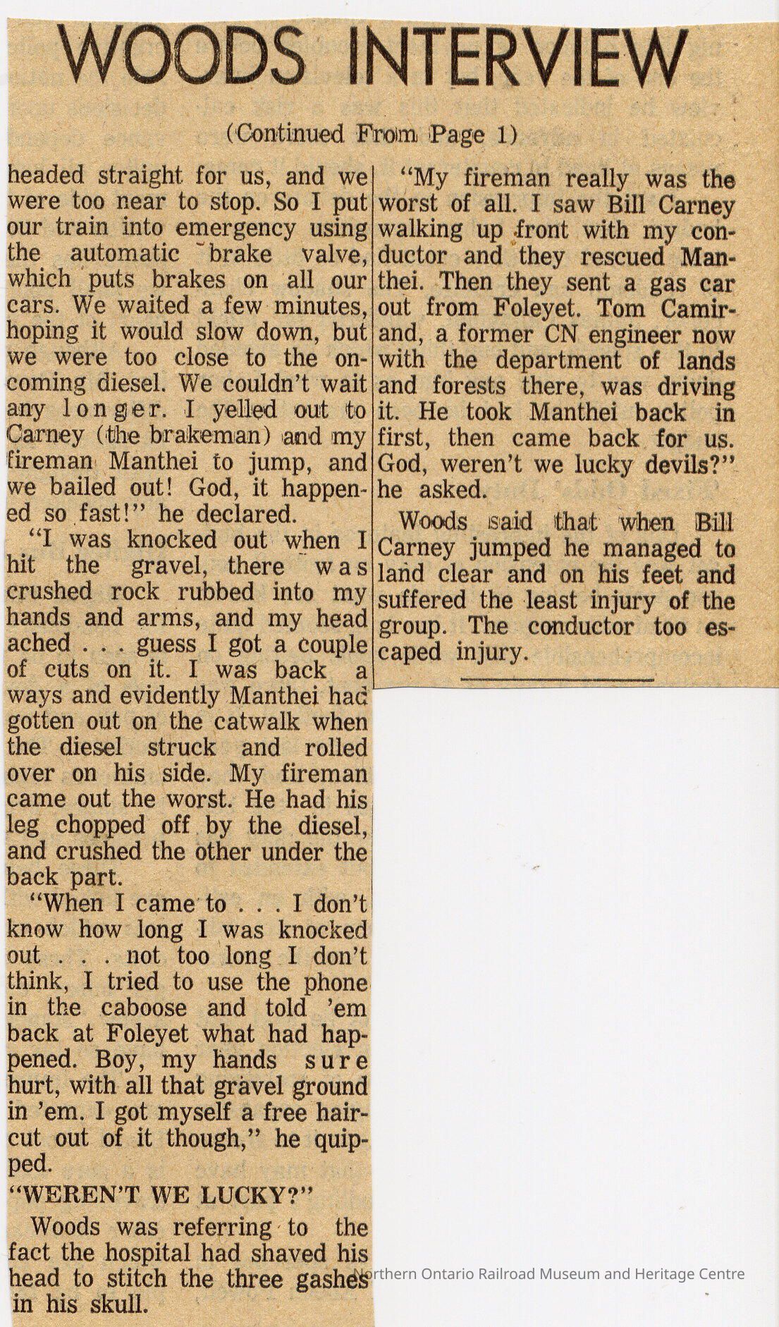 Newspaper Clipping - Woods InterviewEntry/Object ID