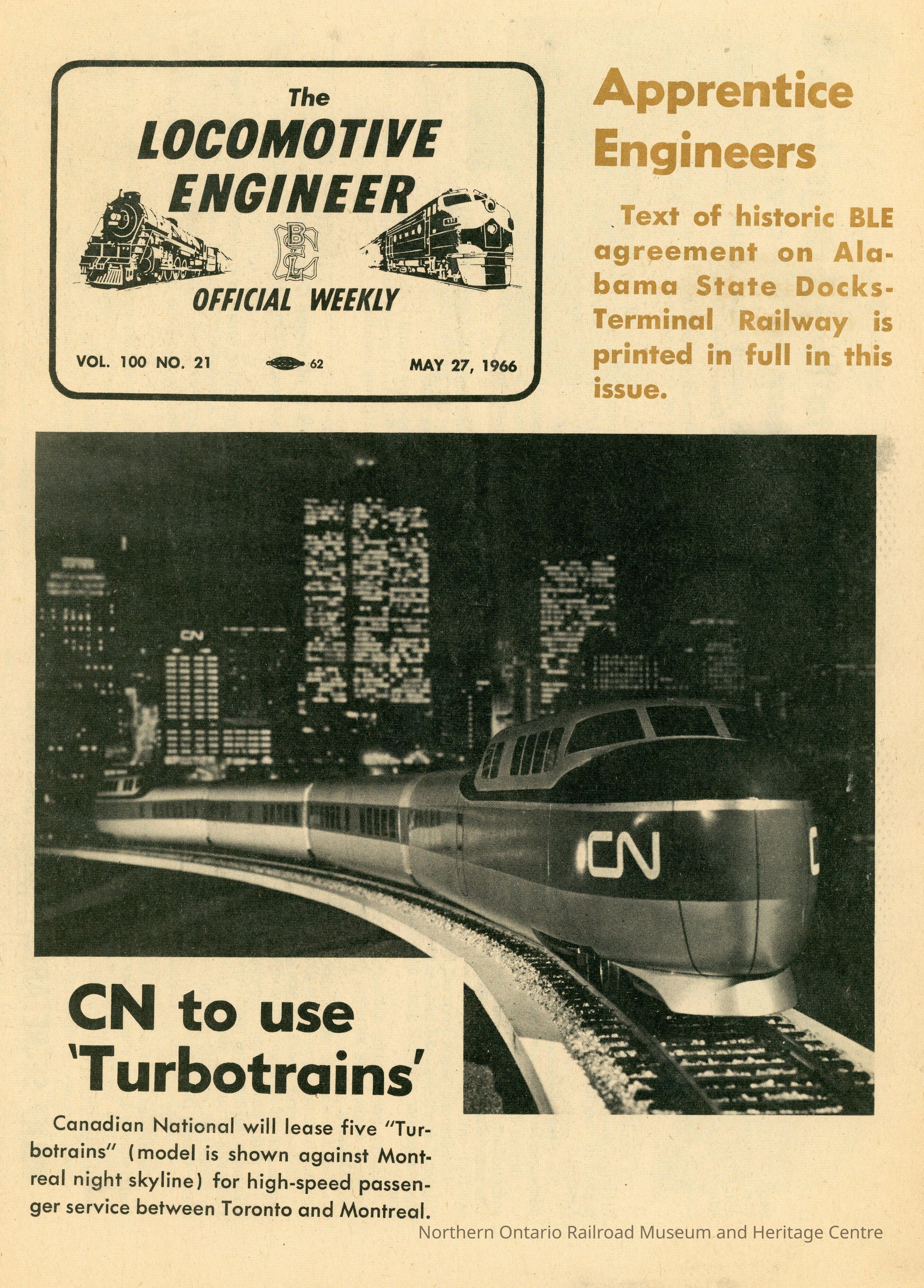 Newspaper, Locomotive Engineer, "CN to use Turbotrains"Collection