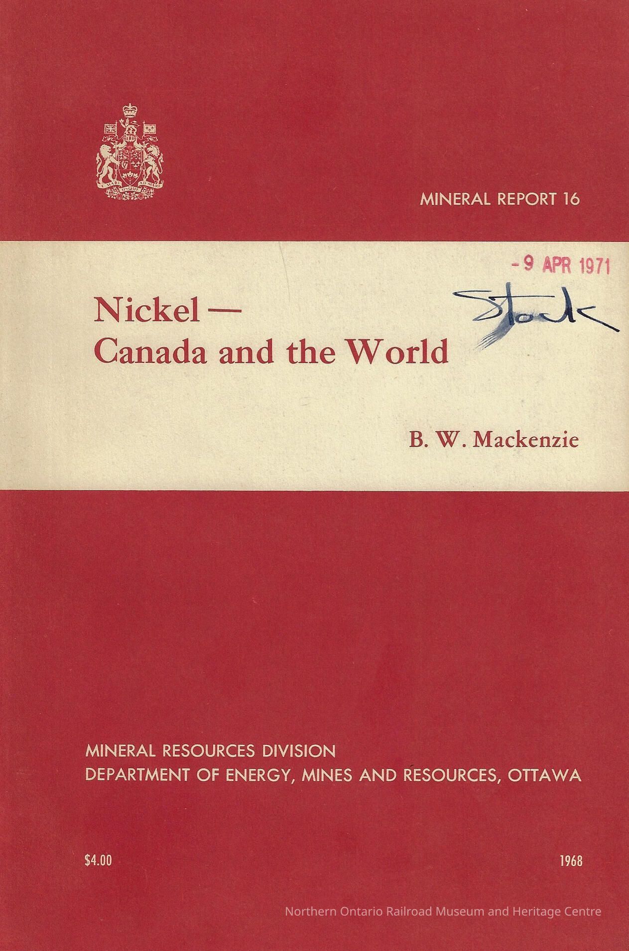 Book discussing the history of the presence of nickel throughout Canada as well as the nickel industry.Context