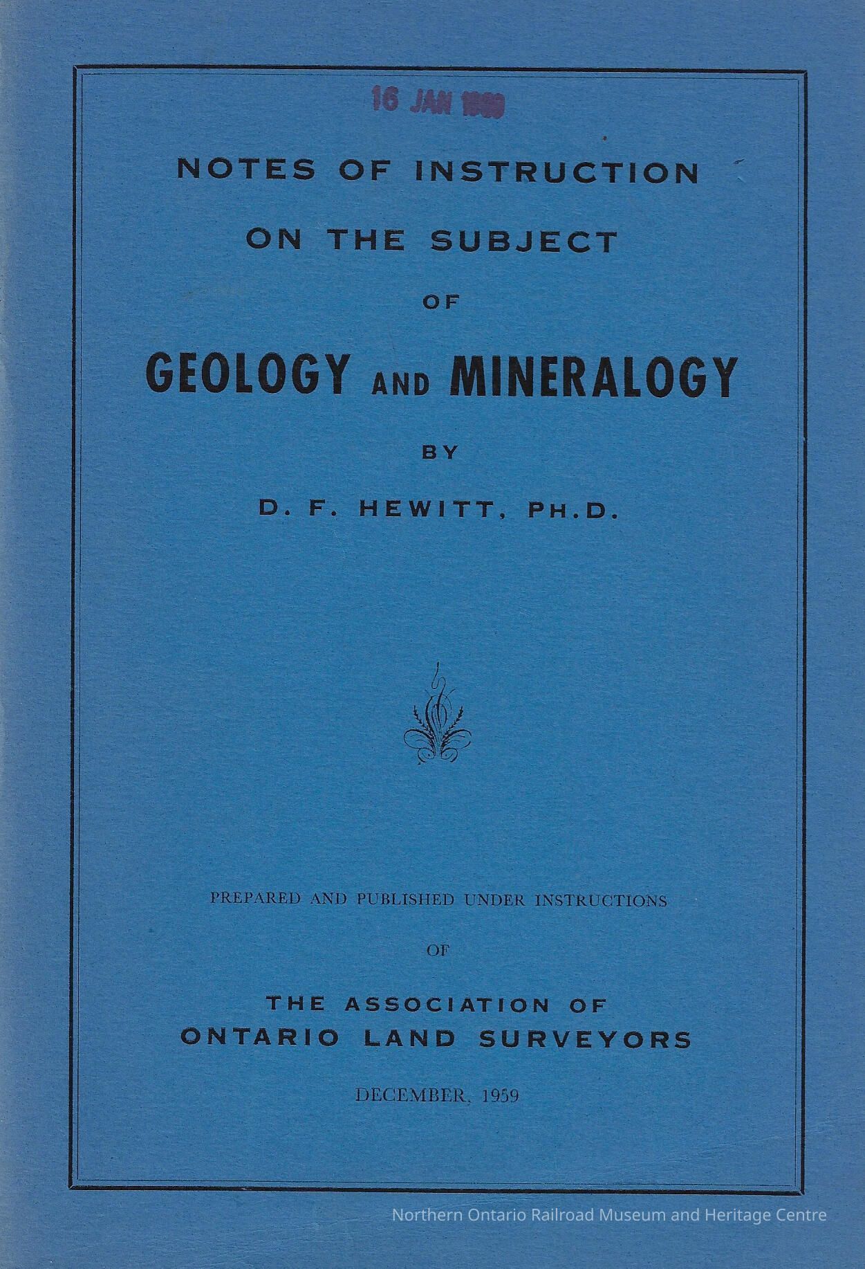 Book published by the Association of Ontario Land Surveyors containing a teaching guide for teaching about geology and mineralogy. The course it complimented was the Association of Ontario Land Surveyors Course.Context