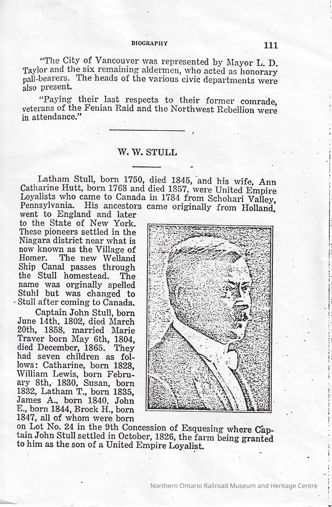 Obituary and biography of William Walter Stull, a former Ontario Land SurveyorCreator
