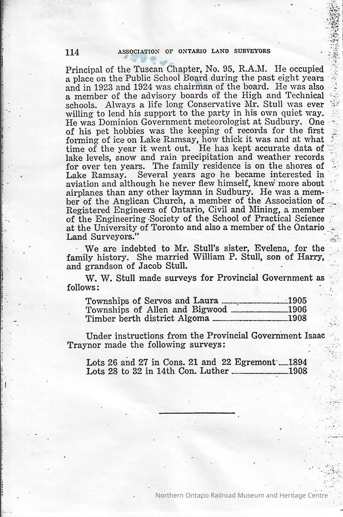 Capreol History, Sudbury History, Obituaries, Association of Ontario Land SurveyorsCataloged By
