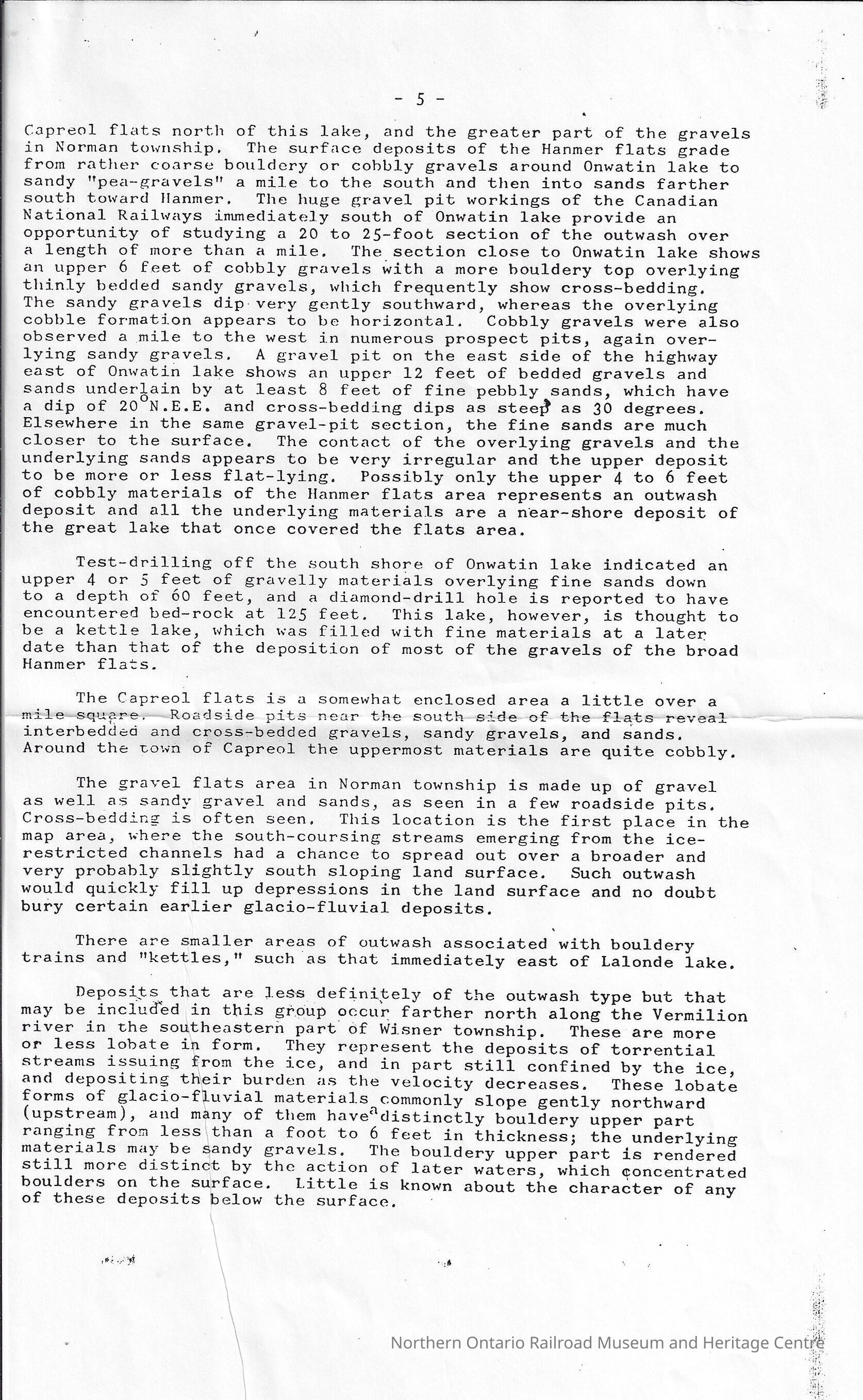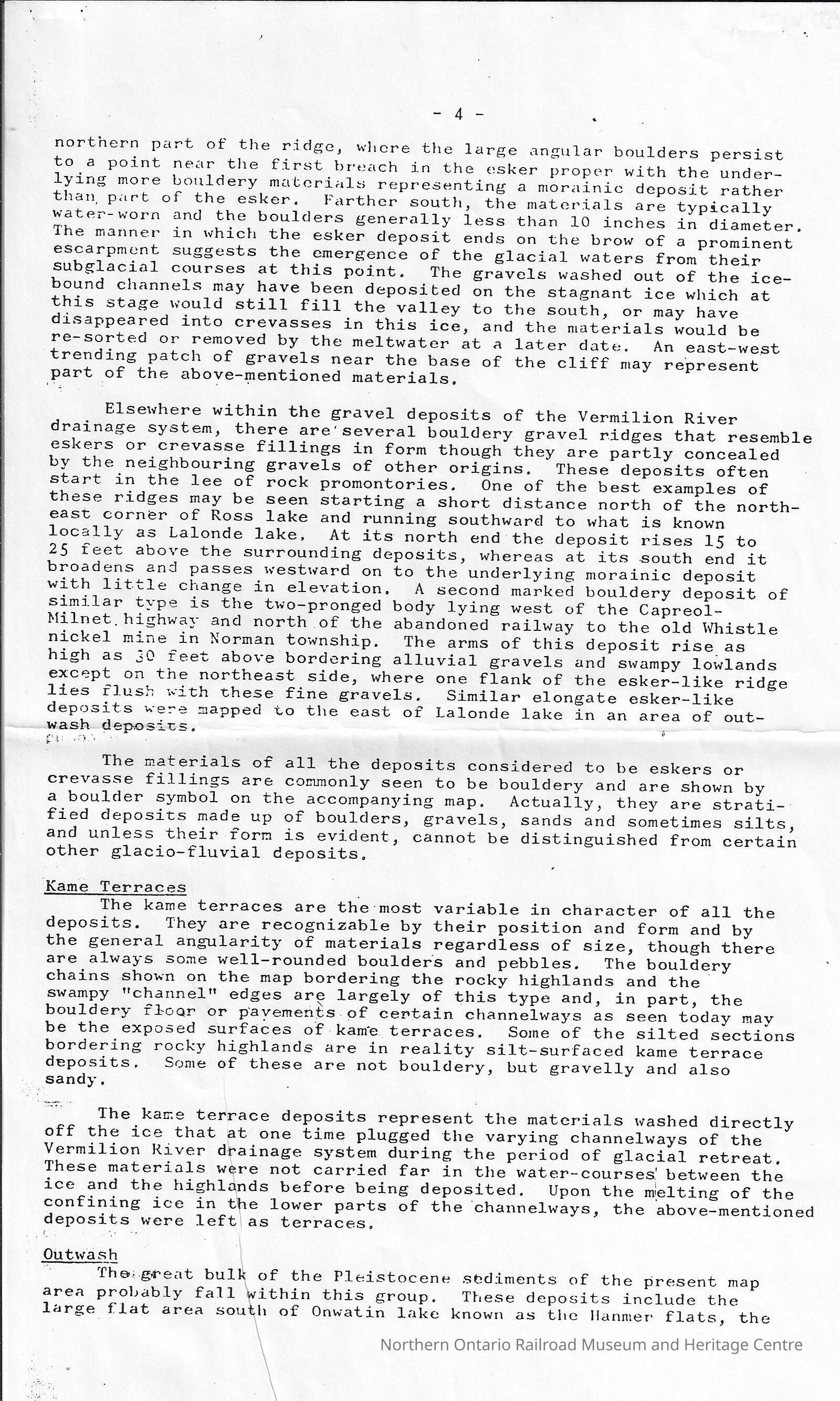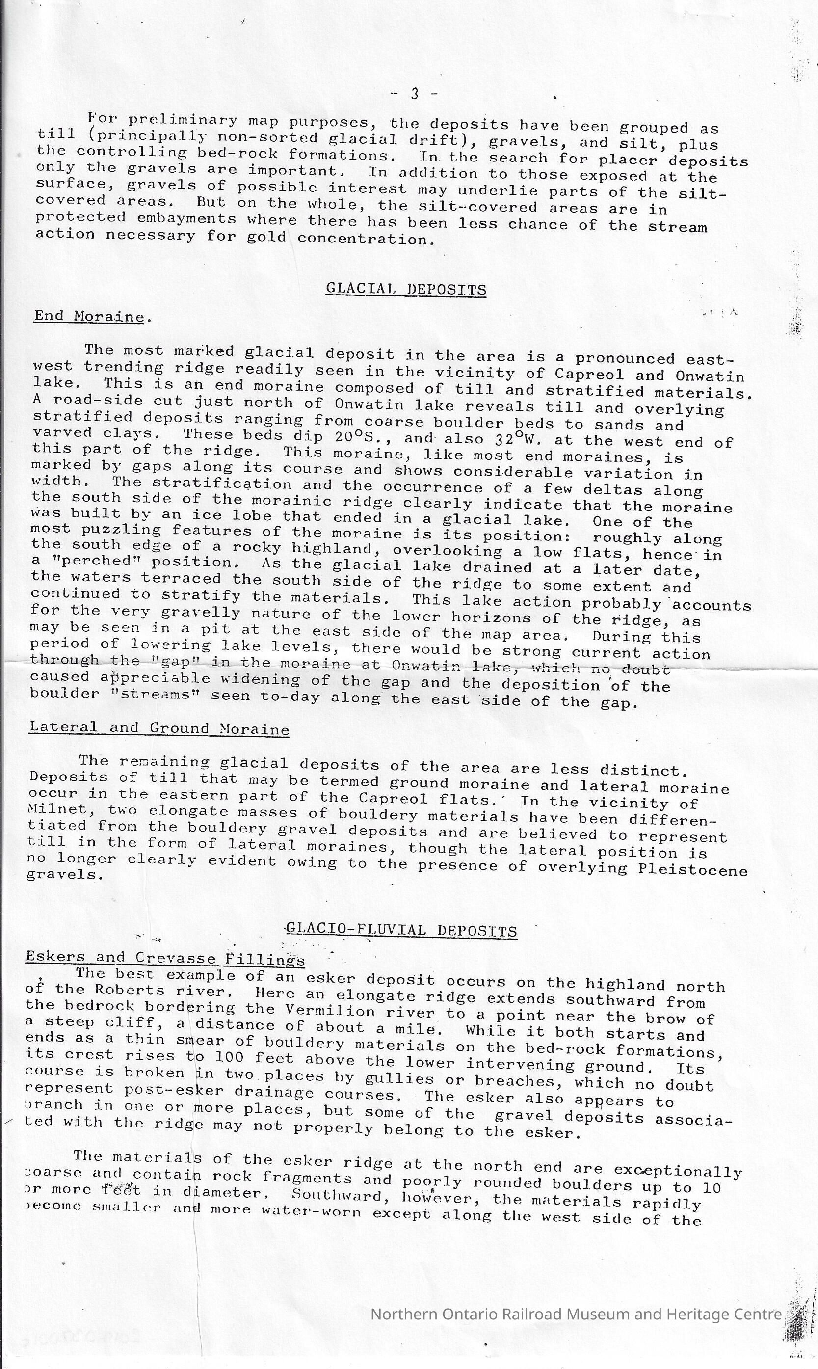 Ontario Department of Mines: The Pleistocene Geology of the Vermillion River System Near Capreol District of Sudbury, Ontario (with special reference to placer gold)Description