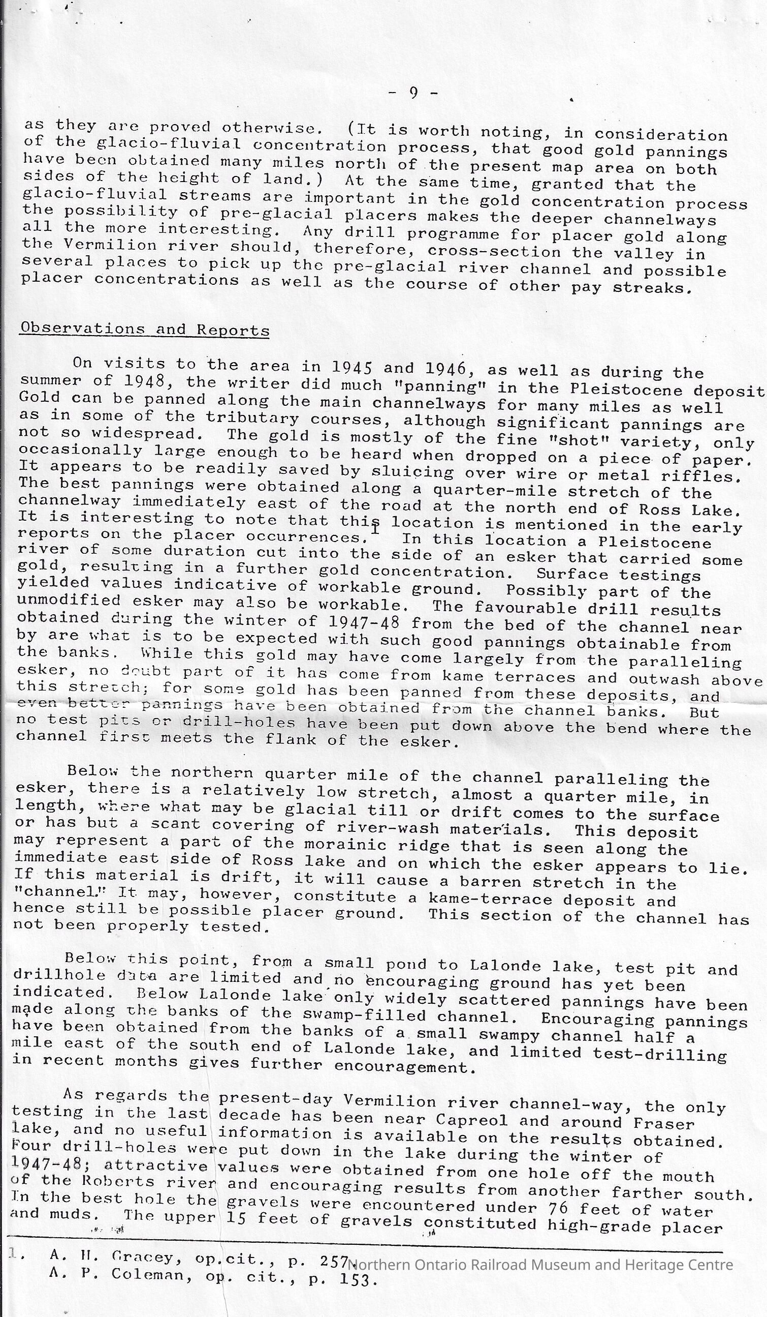 Article, essay written by V.K. Prest regarding the pleistocene deposits of gold, and other materials, dug up in the Vermillion river in August and September, 1948.Creator