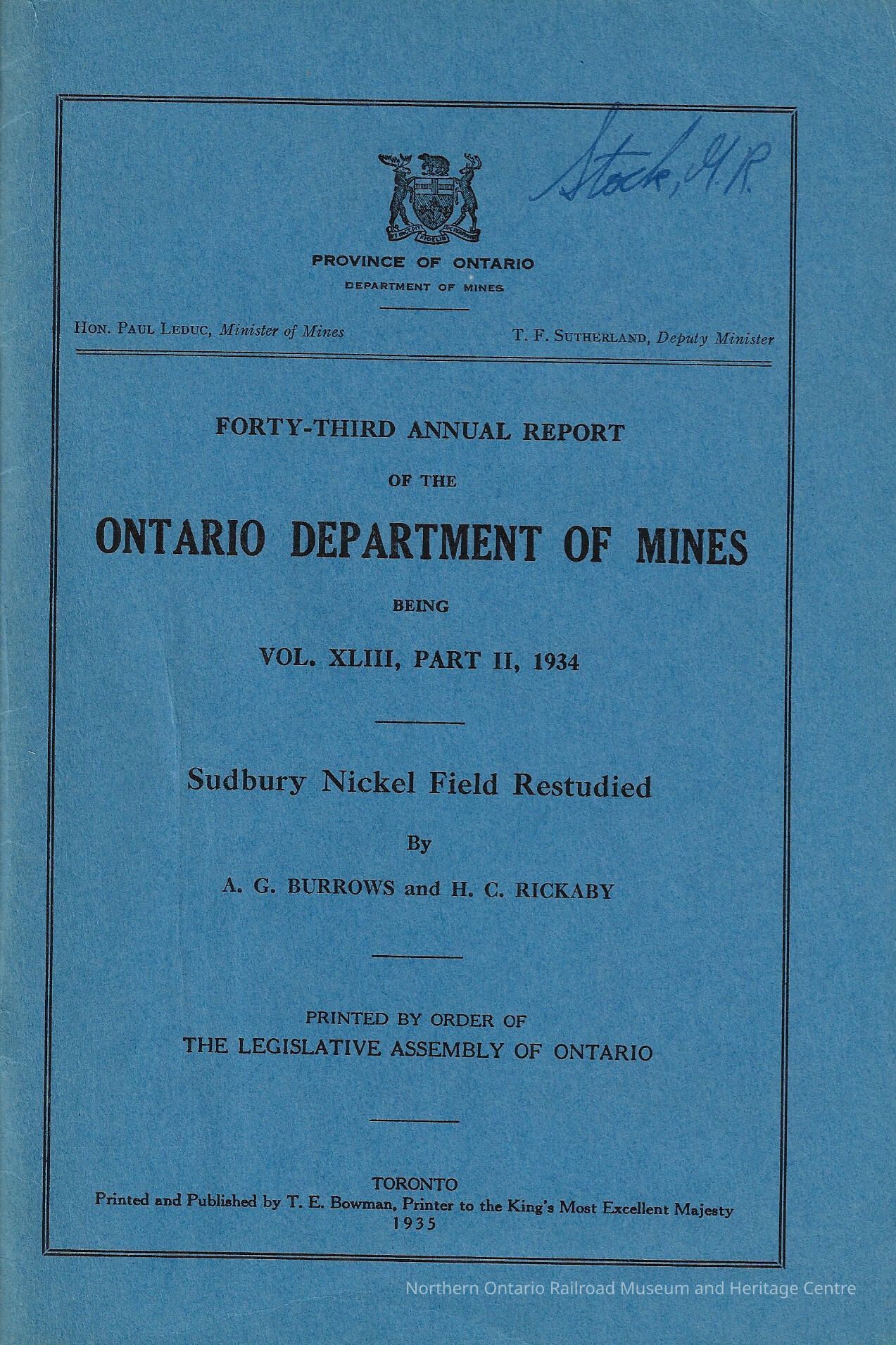 Ontario Department of Mines Vol 43, Part 2, 1934: Sudbury Nickel Field RestudiedEntry/Object ID