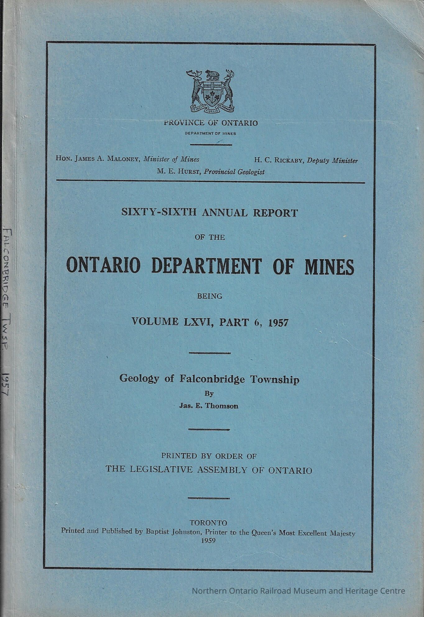 Ontario Department of Mines Vol 66 (6) Geology of Falconbridge Township, 1957Entry/Object ID