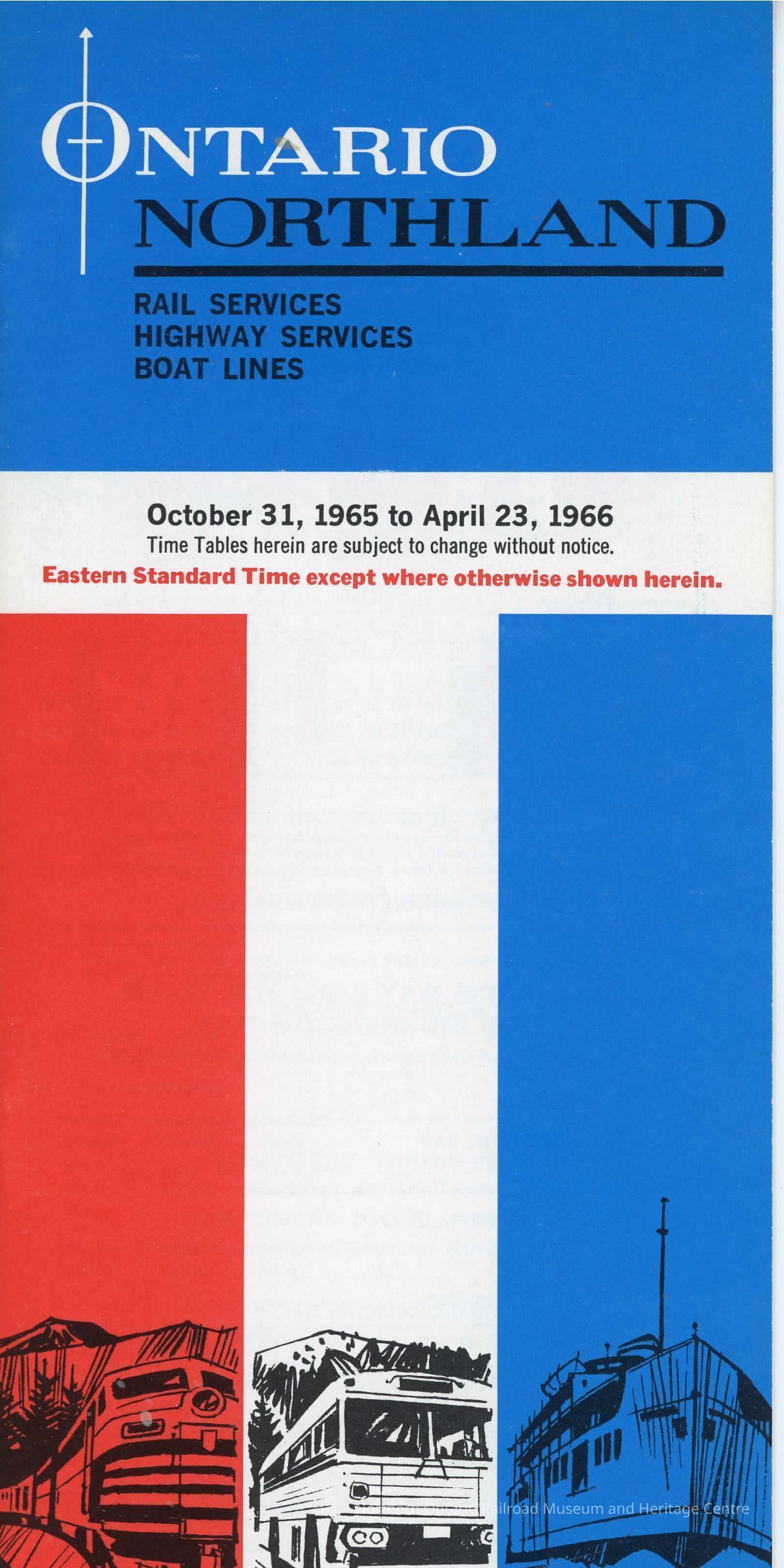 Ontario Northland Rail Services/ Highway Services/ Boat Lines Schedule, Effective October 31, 1965 to April 23, 1966Entry/Object ID