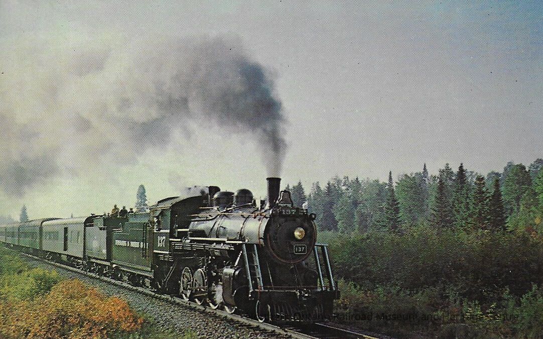 "The sound of steam is heard once more in the misty Autumn air of Northern Ontario as the Ontario Northland Railway's old time steam engine takes a special excursion run out of North Bay for Temagami and points north"