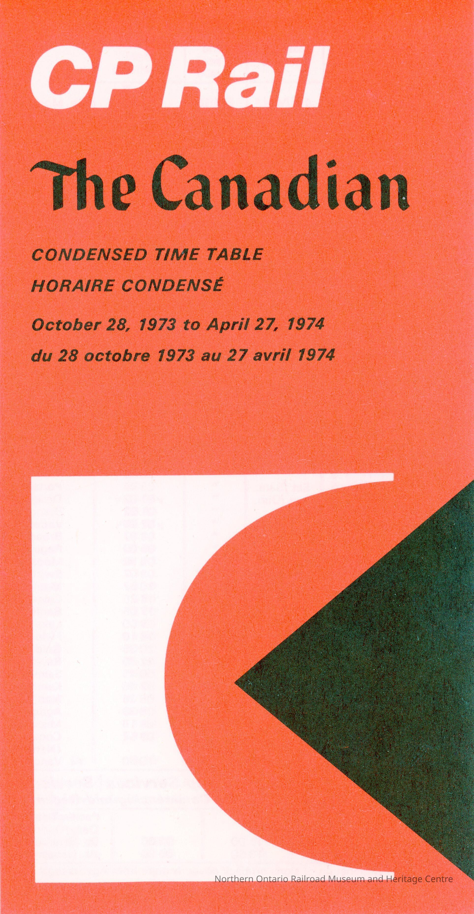 Passenger Time Table, CP Rail, October 28th 1973 to April 27th 1974.Collection