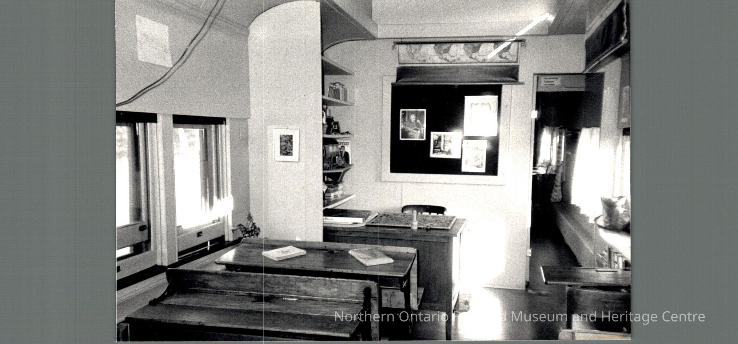 Photos show the interior of the Sloman school car when it was brought to Clinton ON to become a museum. Fred Sloman taught on the school car from 1926 until 1964, the car ran from Capreol to Foleyet.Collection