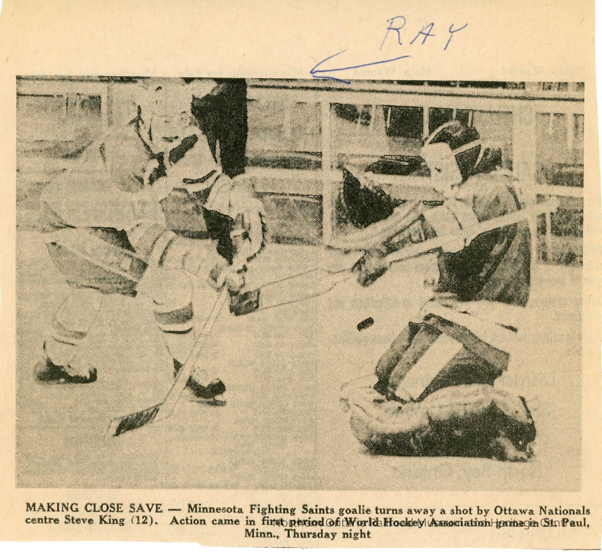 Photo of Ray Thomas refereeing Minnesota Fighting Saints vs. Ottawa Nationals hockey game (Unknown date)Collection