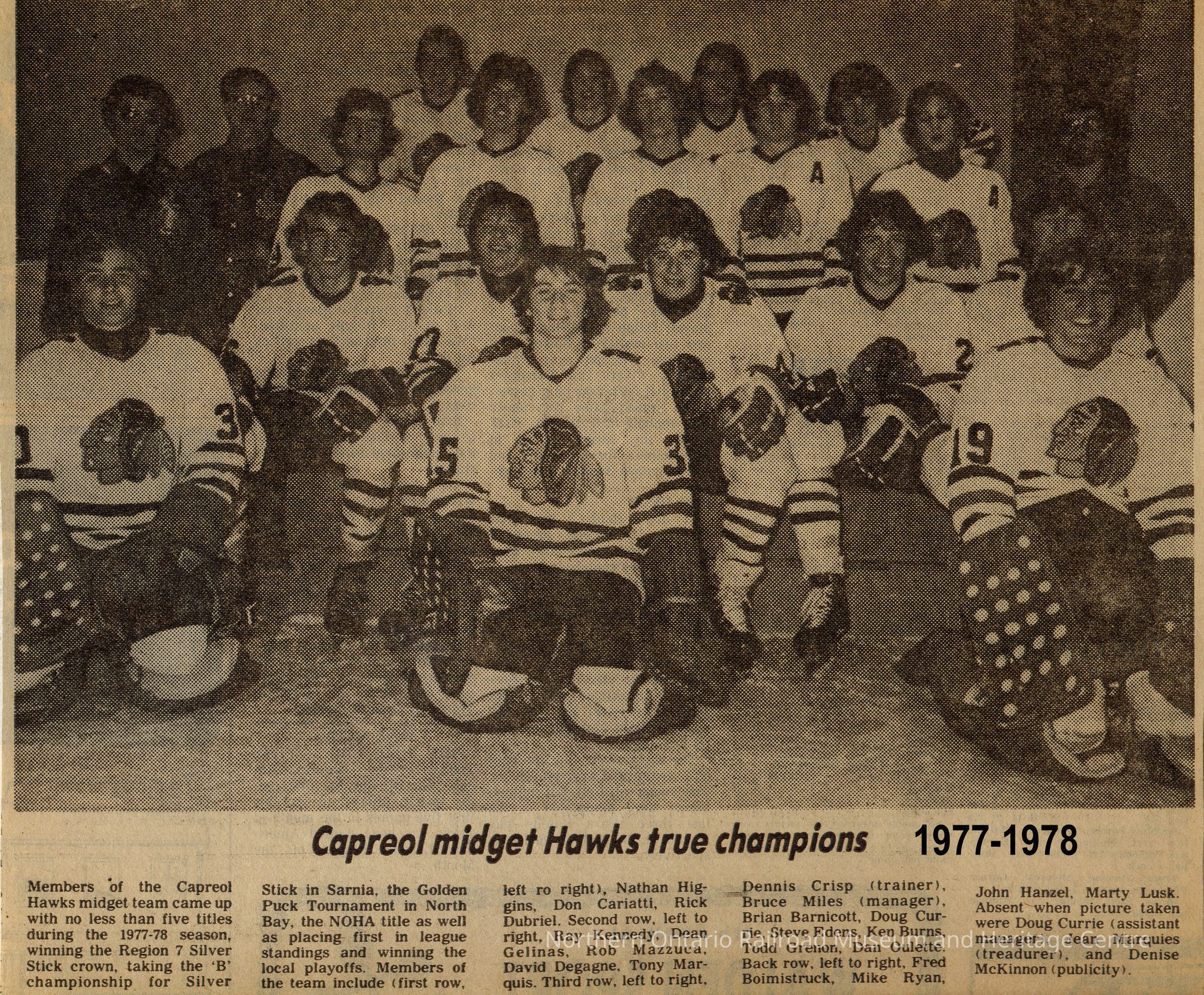 Photograph, 1977-1978 Capreol Midget Hawks.Collection