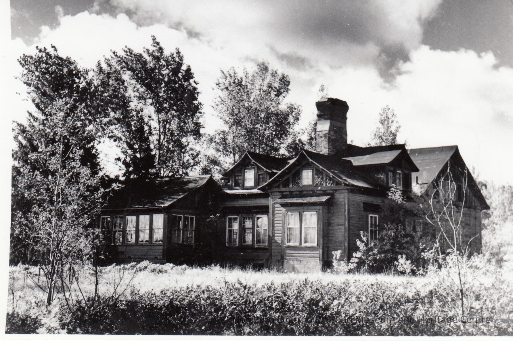 Black and White- A large house stands abandoned in Sellwood. It has a series of sloped roofs and a large chimney.Collection