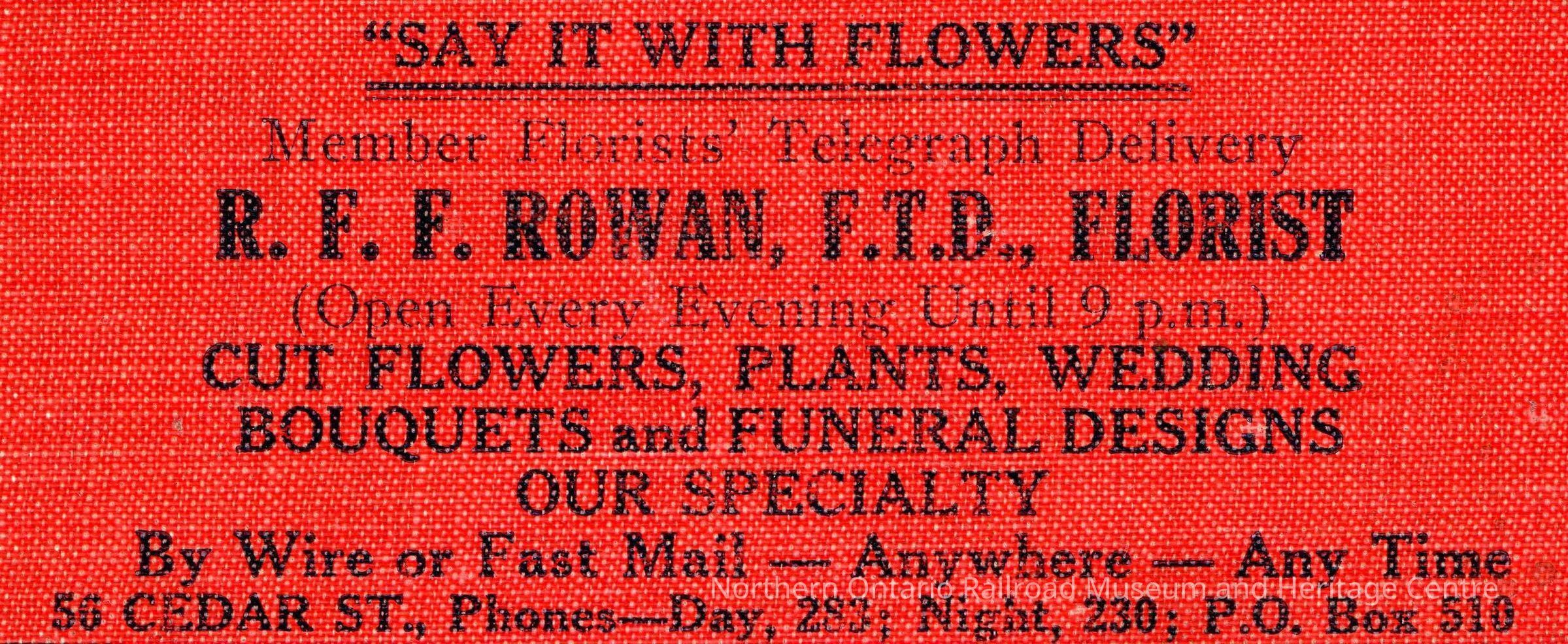 Photograph, Advertisement, R.F.F. Rowan, F.T.D. Florist.Collection