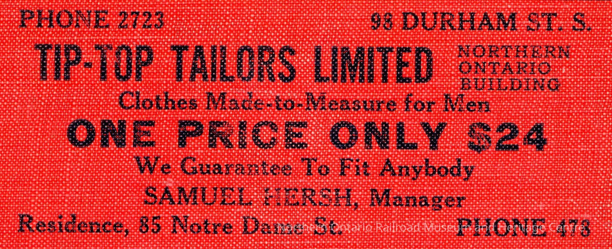Photograph, Advertisement, Tip-Top Tailors.Collection