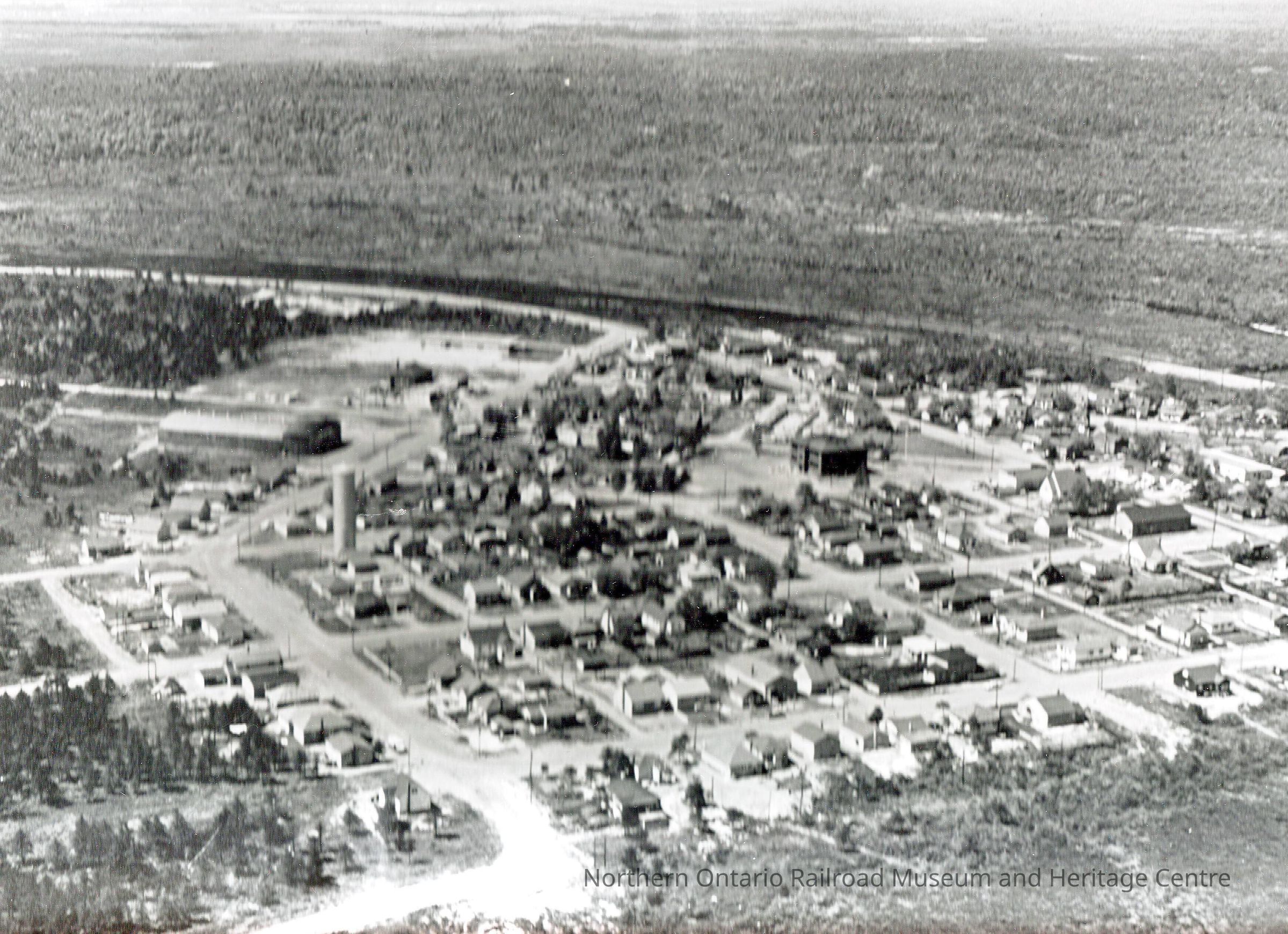 Digital copy of a black and white photograph of an aerial view of Capreol.Collection