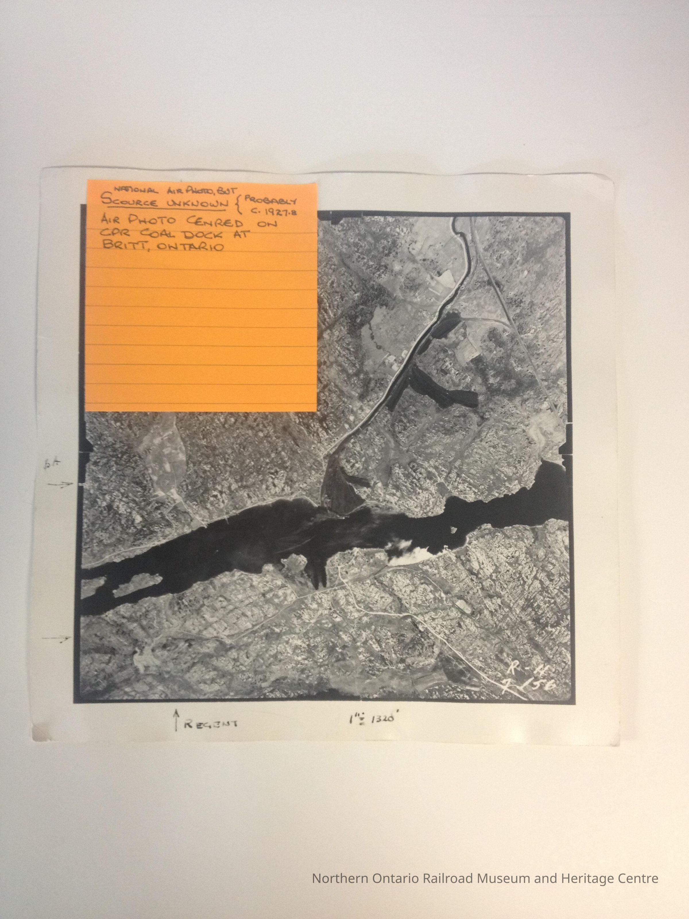 Black and white aerial photograph of the CPR coal dock at Britt, Ontario.Collection