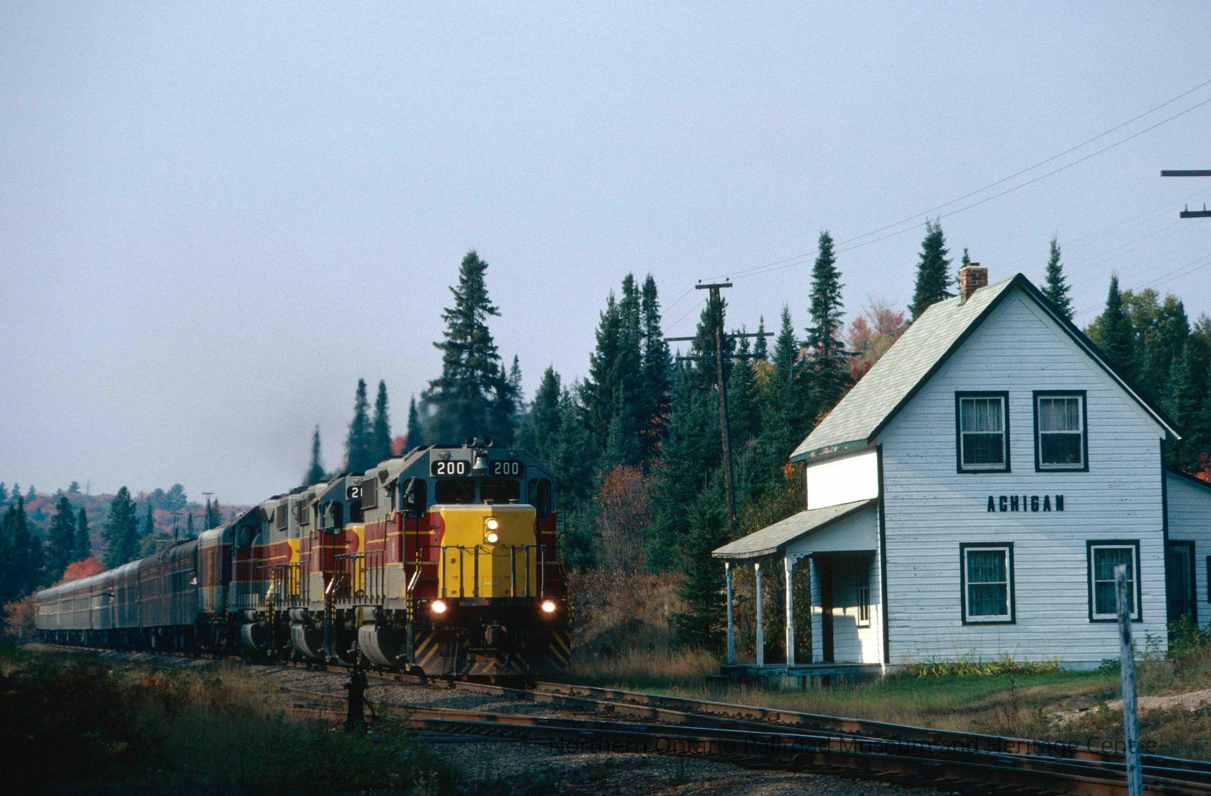 Photograph, Algoma Central Locomotive 200, Achigan, 1983.Collection