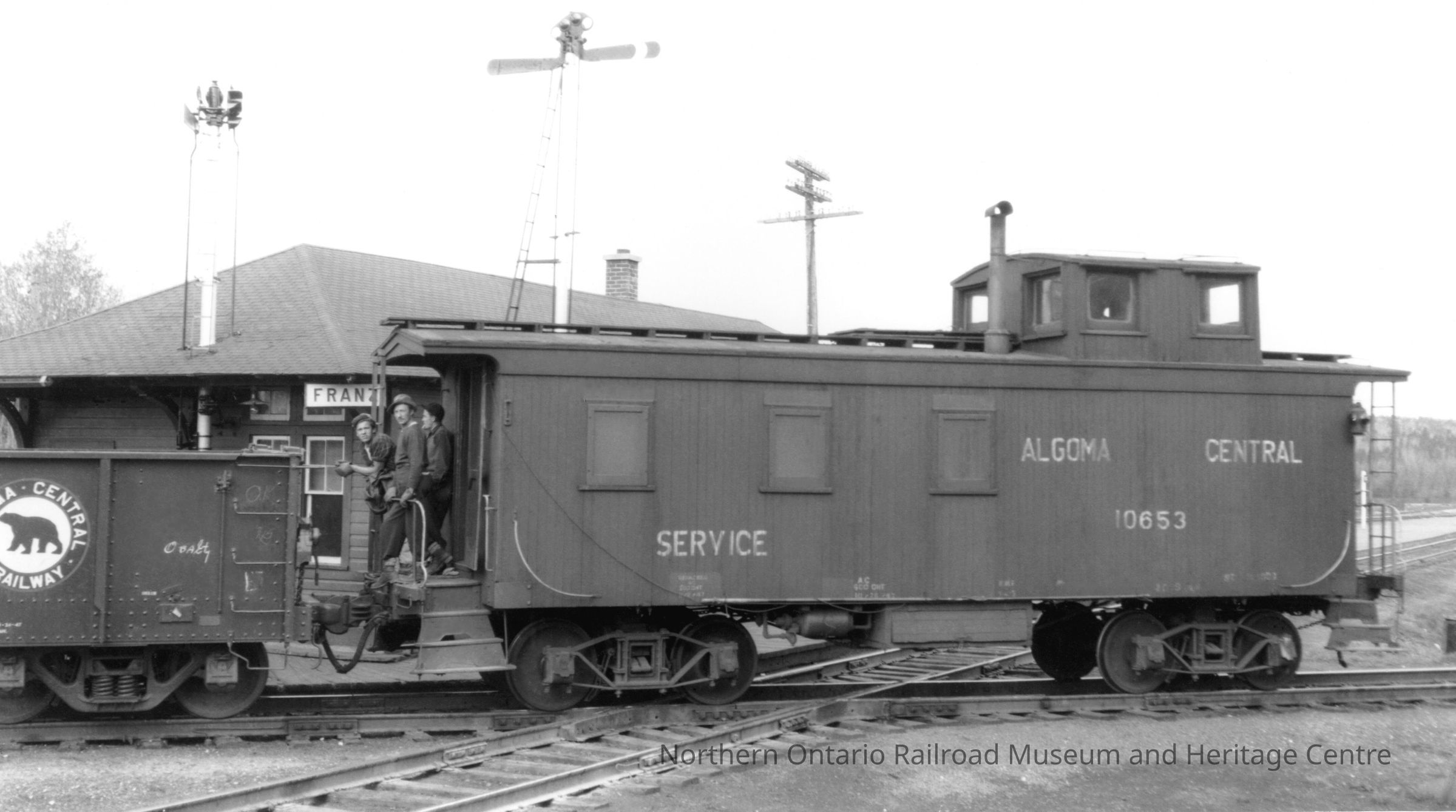 Photograph, Algoma Central Service Caboose 106531 on southbound work train at Franz, ON.Collection