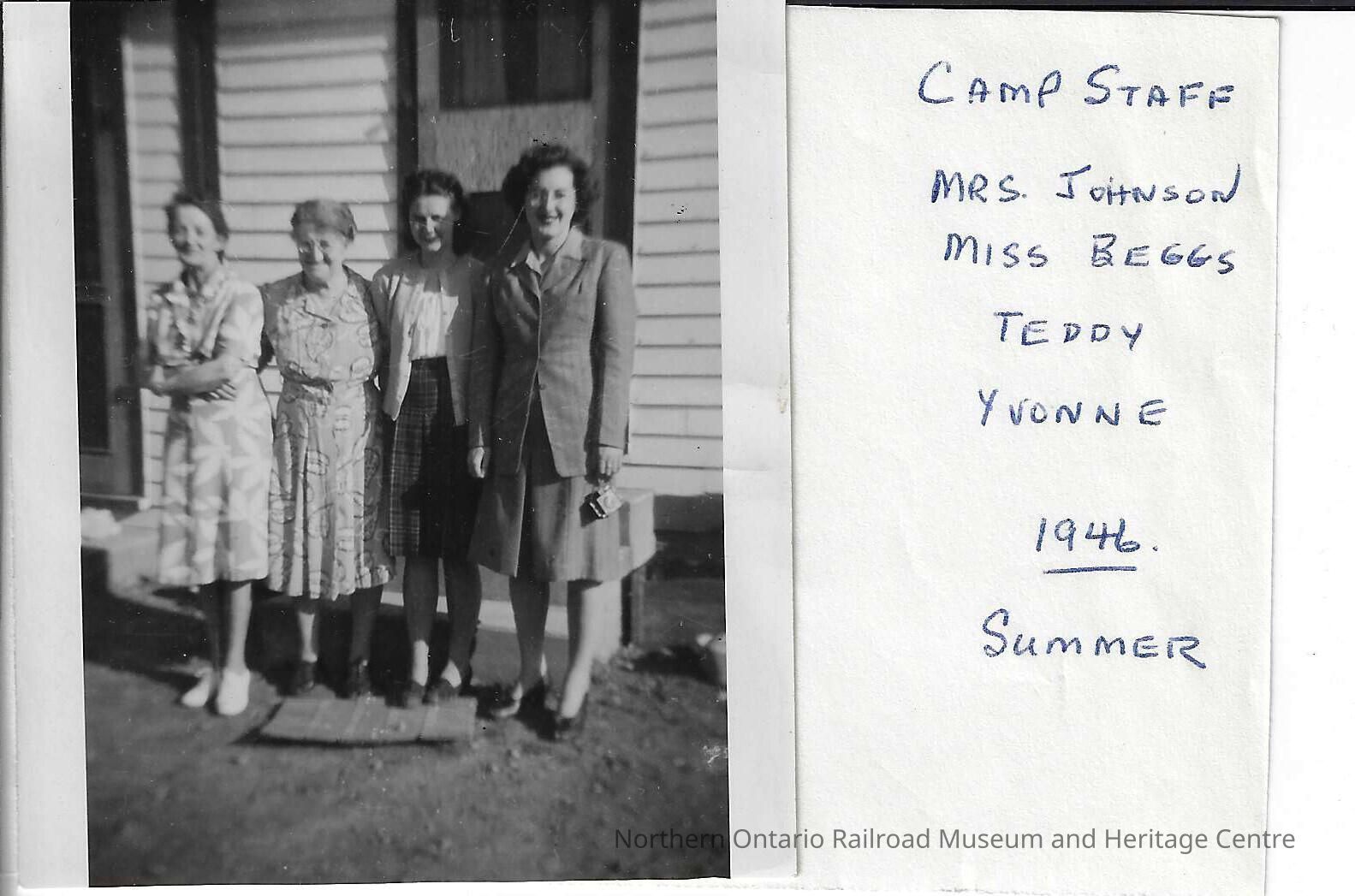 Photograph - Camp Staff (Mrs Johnson, Miss Beggs, Teddy, and Yvonne) Summer 1946Entry/Object ID