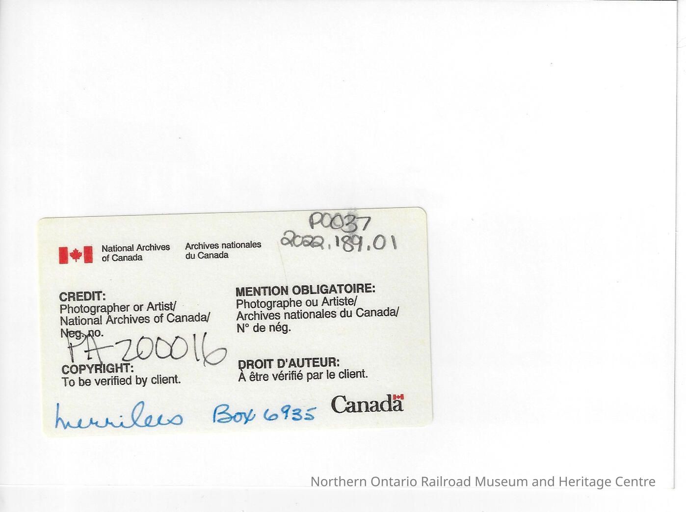 Name of photographer or artist/National Archives of Canada/Copyright Negative number:
