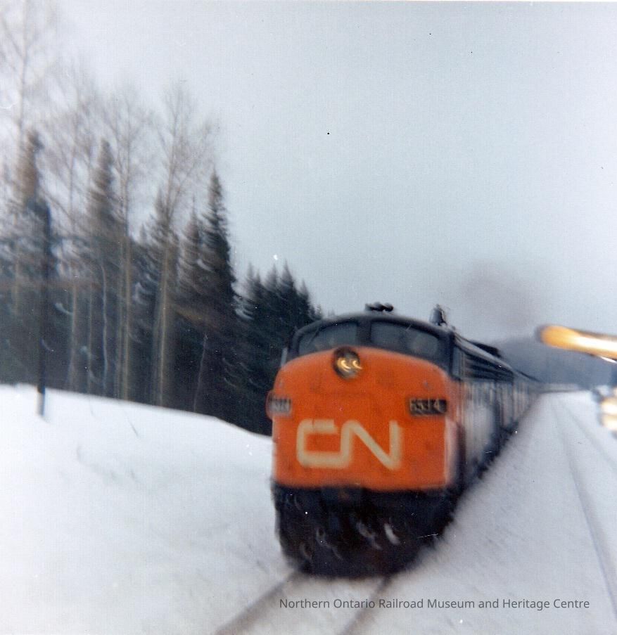 Photograph - Canadian National Diesel Locomotive 6514 Train No. 10 passing 103 at Ostrom, Feb. 1966Collection