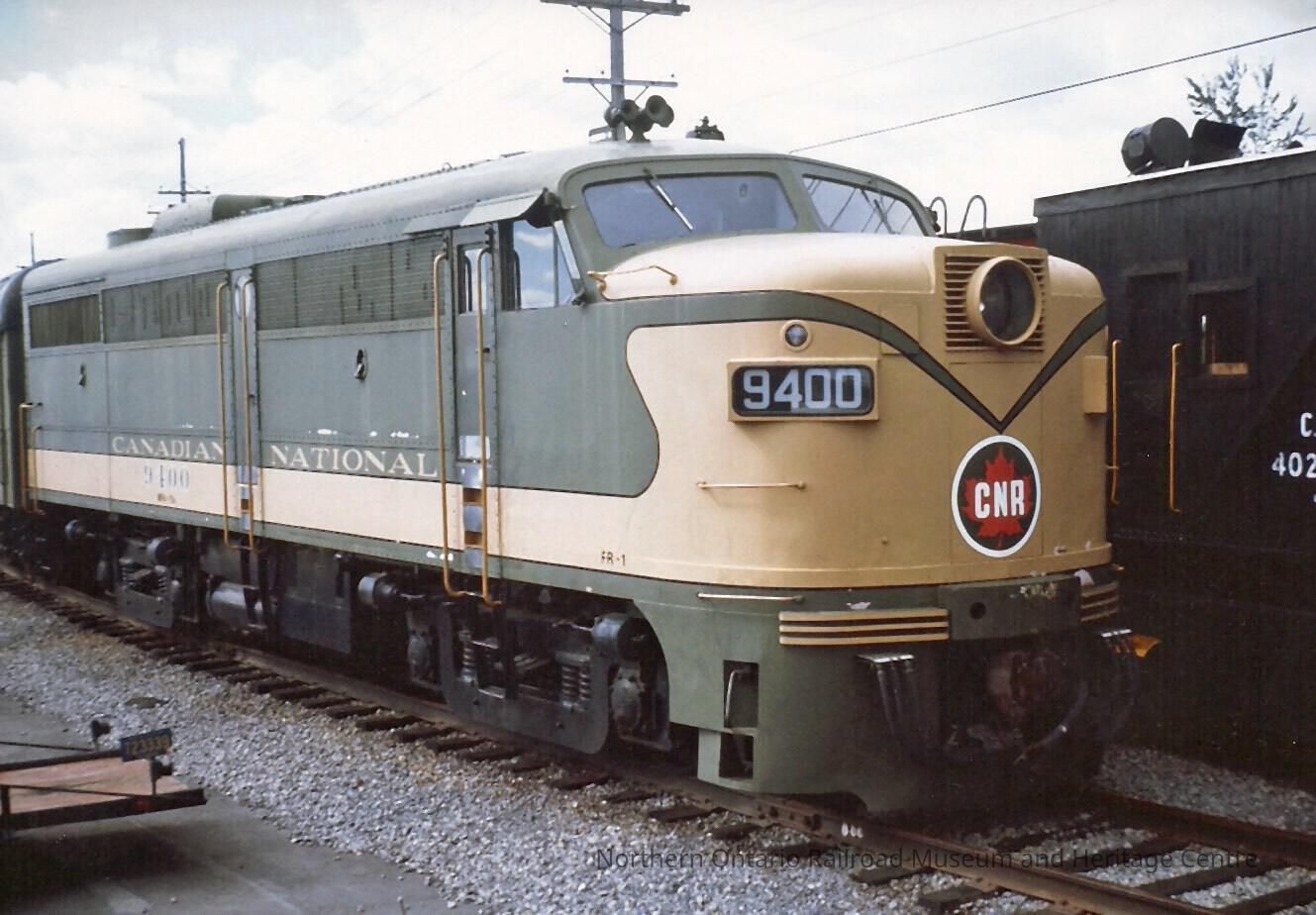 Color photograph of Canadian National locomotive no. 9400.Context