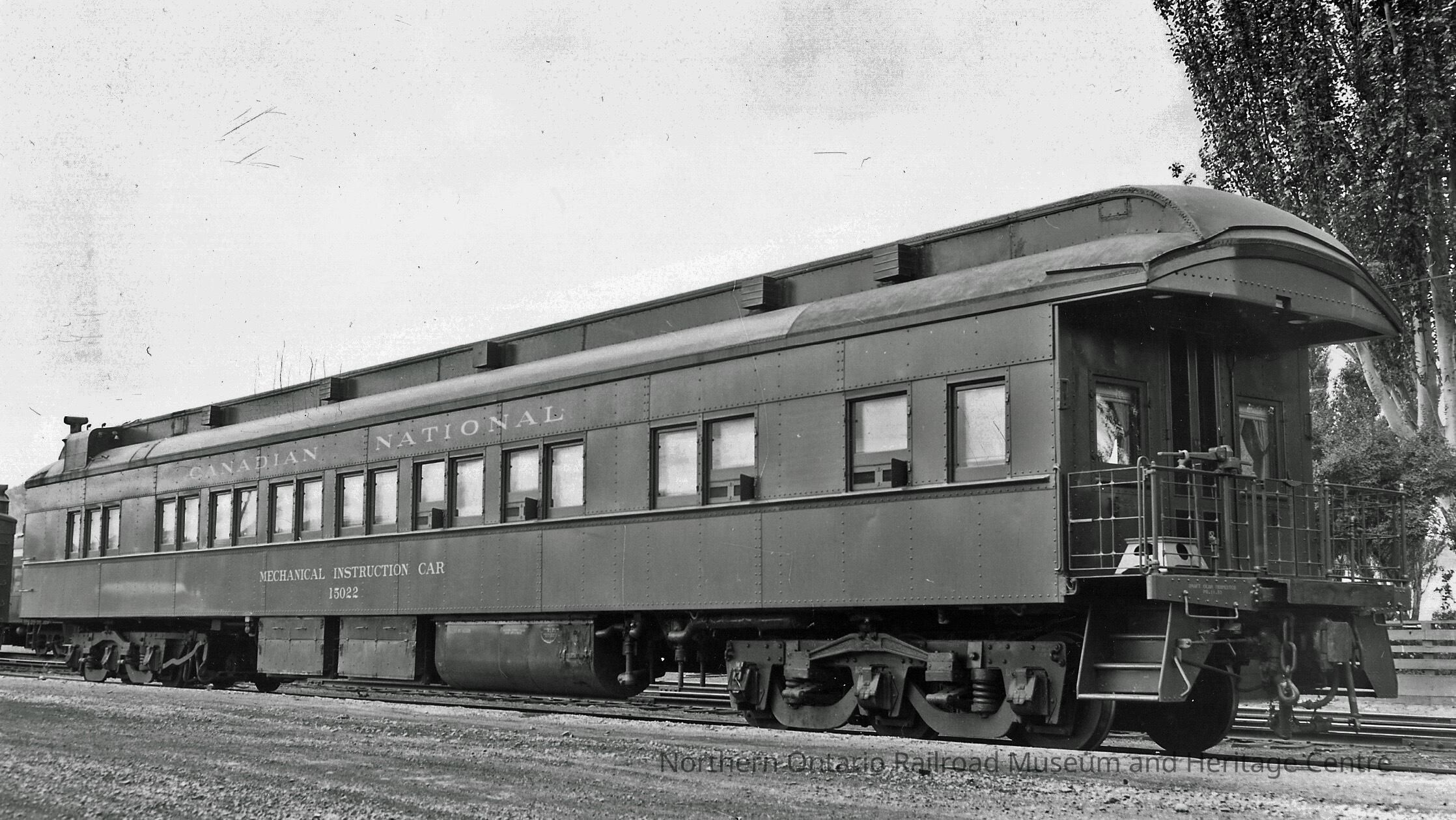 Black and white photograph of Canadian National mechanical instruction car no. 15022.Collection